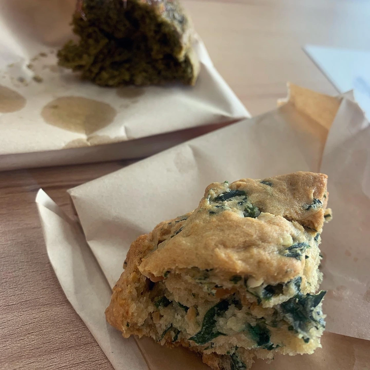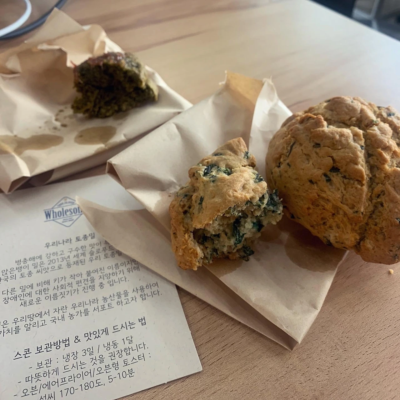 비건스콘 드셔보셨나요. 서양 빵이지만, 우리나라 토종밀에 거문도 쑥과 취나물, 구운쪽파까지 활용해 풍미가 끝내줍니다. #홀썸