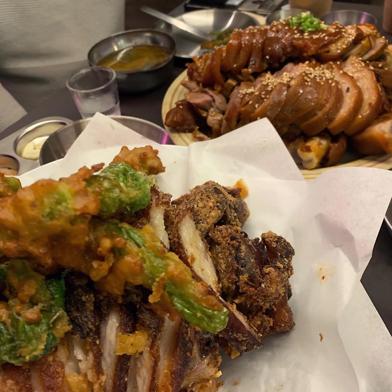 몹시 훌륭한 돼지고기와 L님의 이직 축하. Y님의 무용담이 이젠 귀에 쏙쏙 들어오는군요. 논현동 #영동그집
