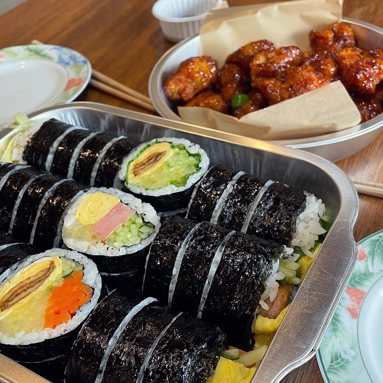요즘 최애 #오토김밥. 배달 대신 후딱 걸어가서 싸옵니다. 닭강정도 시도해봤는데 훌륭.