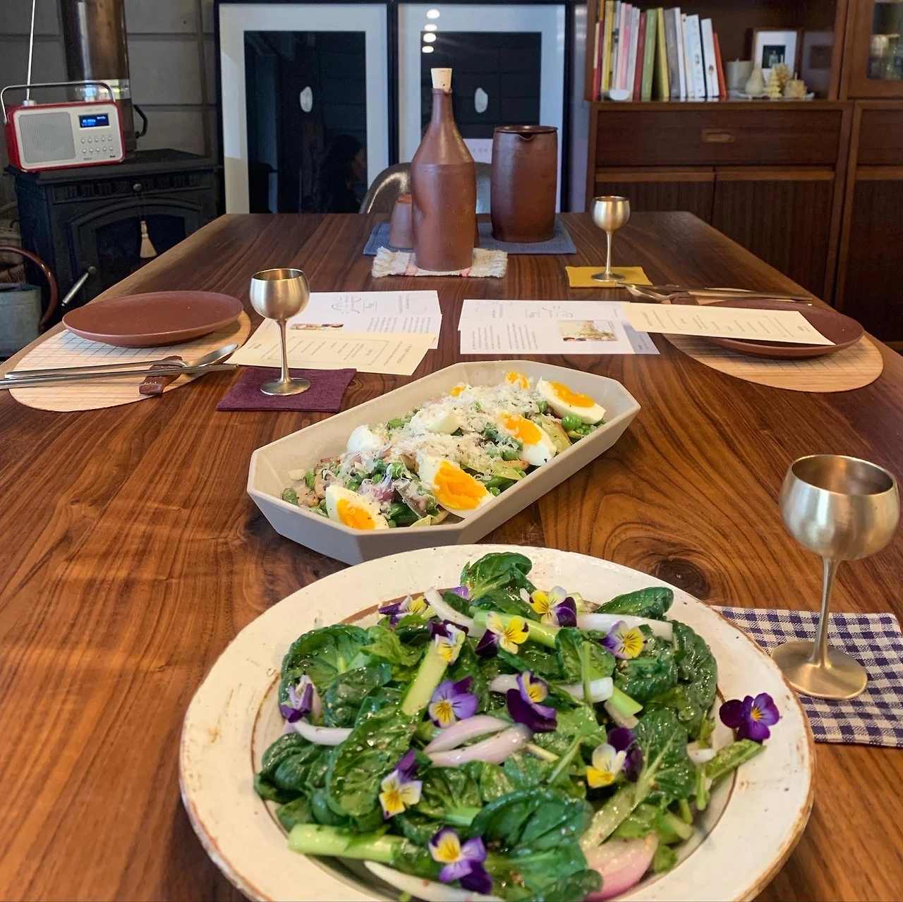 꼭 와보고 싶었던 소셜다이닝 @beeducksalon #비덕살롱 #비덕밥상. 세 명만 초대하면 가능하다고 해서 신청했죠. #소뿔농장 야채로 풍성한 밥상. 특히 페스코 친구를 위해 떡갈비 대신 두부스테이크를 따로 준비해준 비덕님 짱. 유기 잔은 부딪칠 때 믿기지 않게 영롱한 소리가 나는군요.