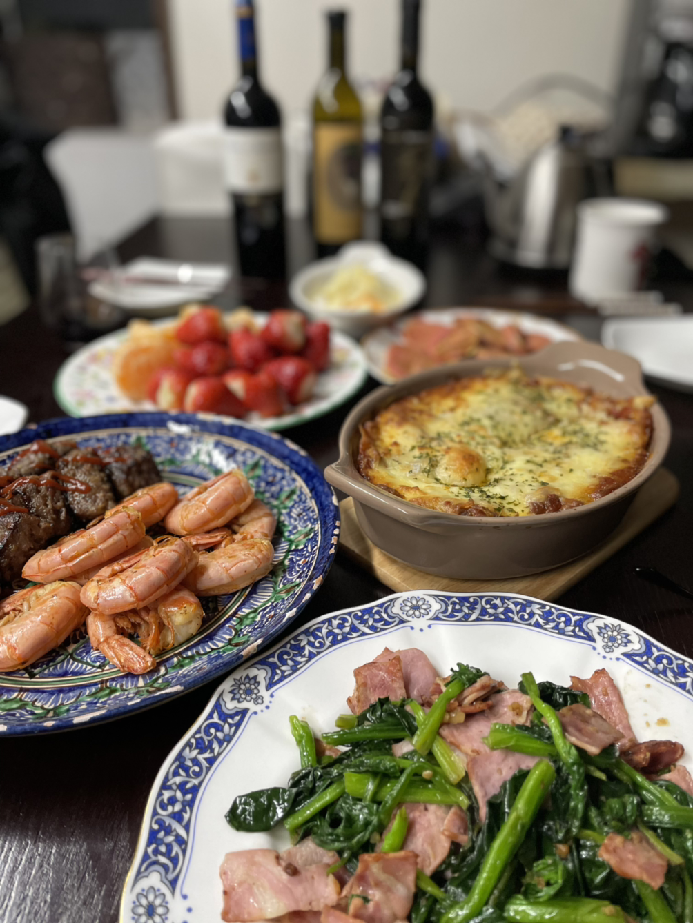 모델인 O선배 표 라자냐와 함박은 친구네 집에서. 진짜 훌륭했죠. 저는 기운 없을 때라 친구집 가는 길에 시금치와 베이컨 사다가 휙 볶아 한 접시. 분홍소세지 계란 적셔 부쳤어요. 다정한 수다의 힘이 중요할 뿐입니다.