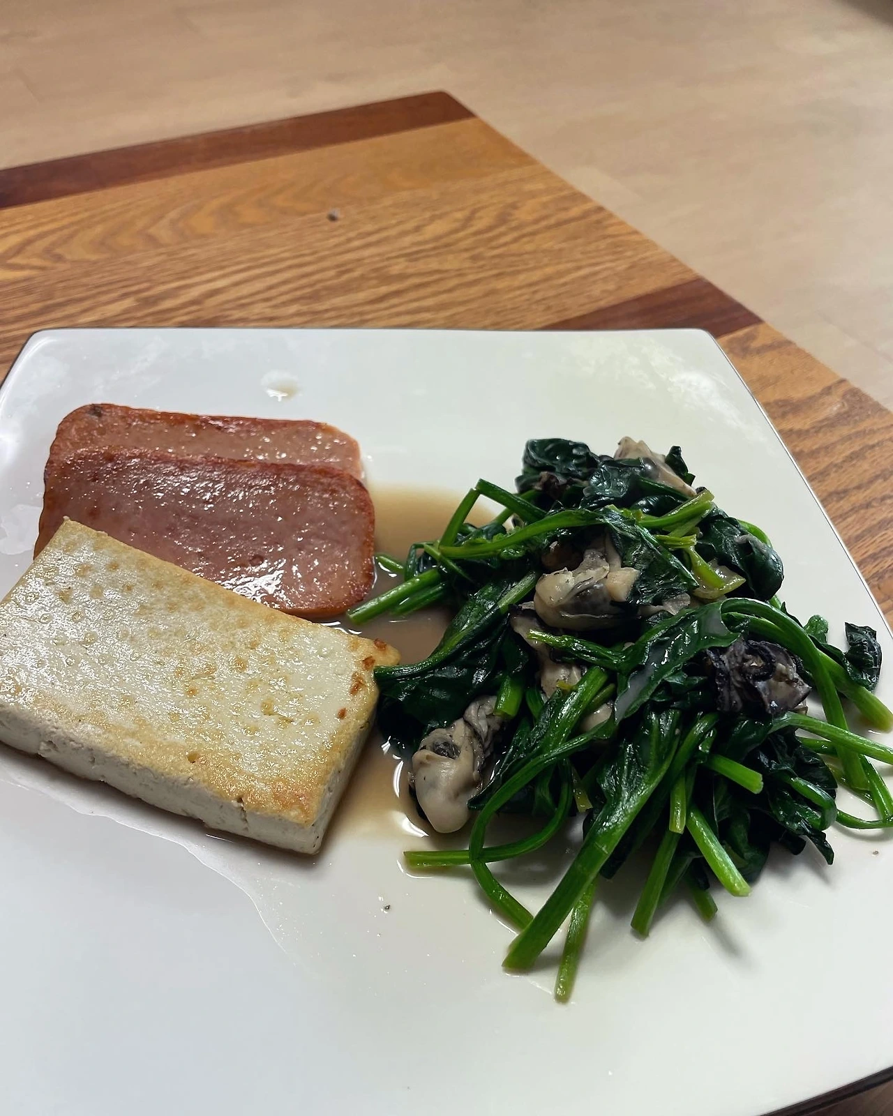 동생이 선물해준 두부프레스도 요즘 최애템. 두부를 눌러 물기를 빼면 그릭요거트 삘은 아니지만 하여간에 괜히 더 고소하고 맛난 느낌. 그렇게 물기 뺀 두부 들기름에 구우면서 스팸은 왜 구웠을까만. 굴시금치 볶음까지 딱 저것만 먹으면 역시 키토식.