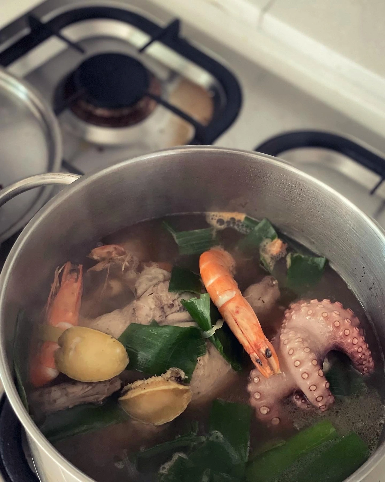 톡딜로 26,900원 저렴하게 구입한 해신탕 밀키트는 닭, 능이버섯, 전복, 새우, 문어까지 훌륭. 양가 어른들에게 배송하고 우리도 한 솥 끓여 아직 남았다.