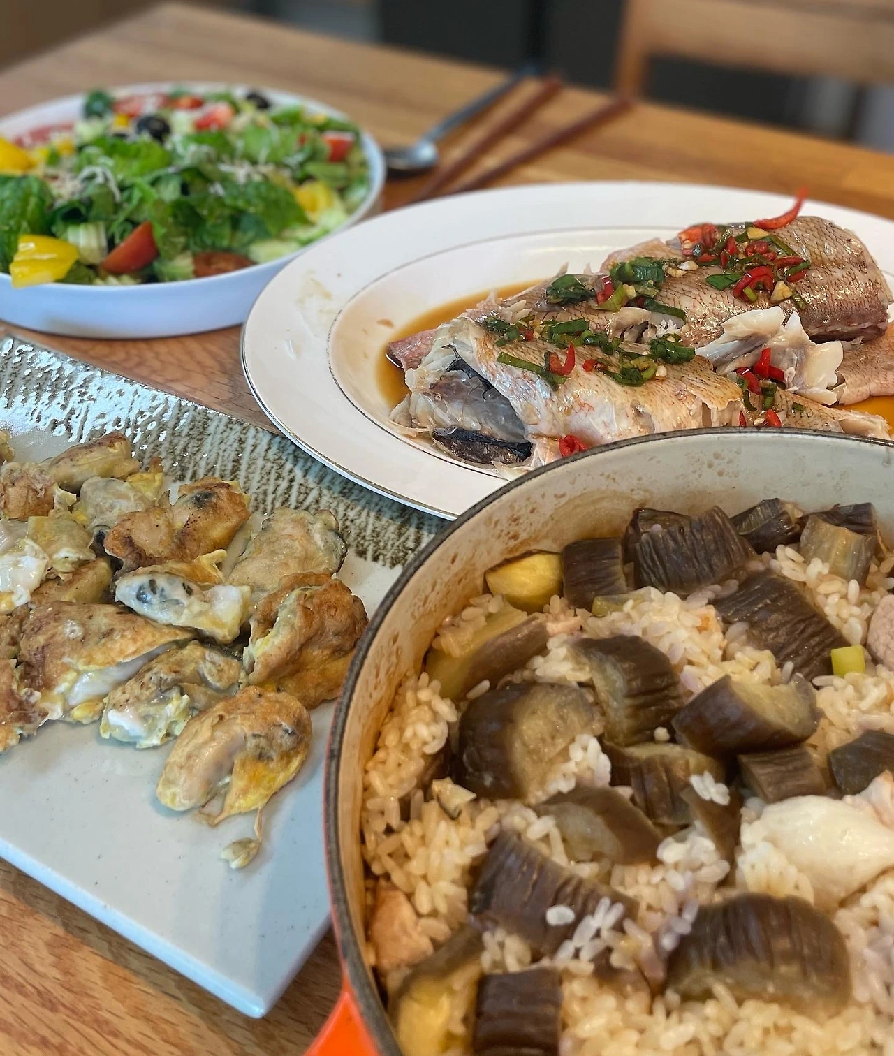 돼지고기 가지 볶다가 솥밥. 굴전. 민어찜까지 저날은 왜 저렇게 힘줬을까. 오래되어 기억도 안나네..