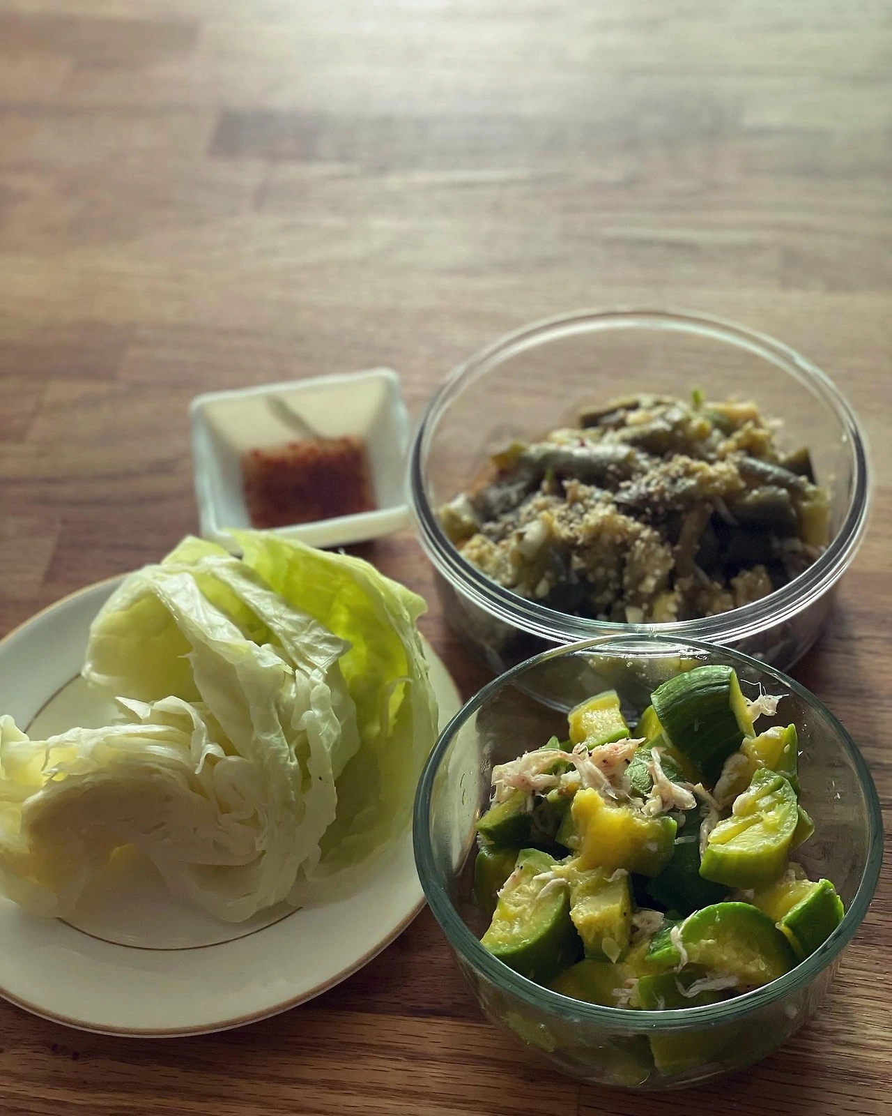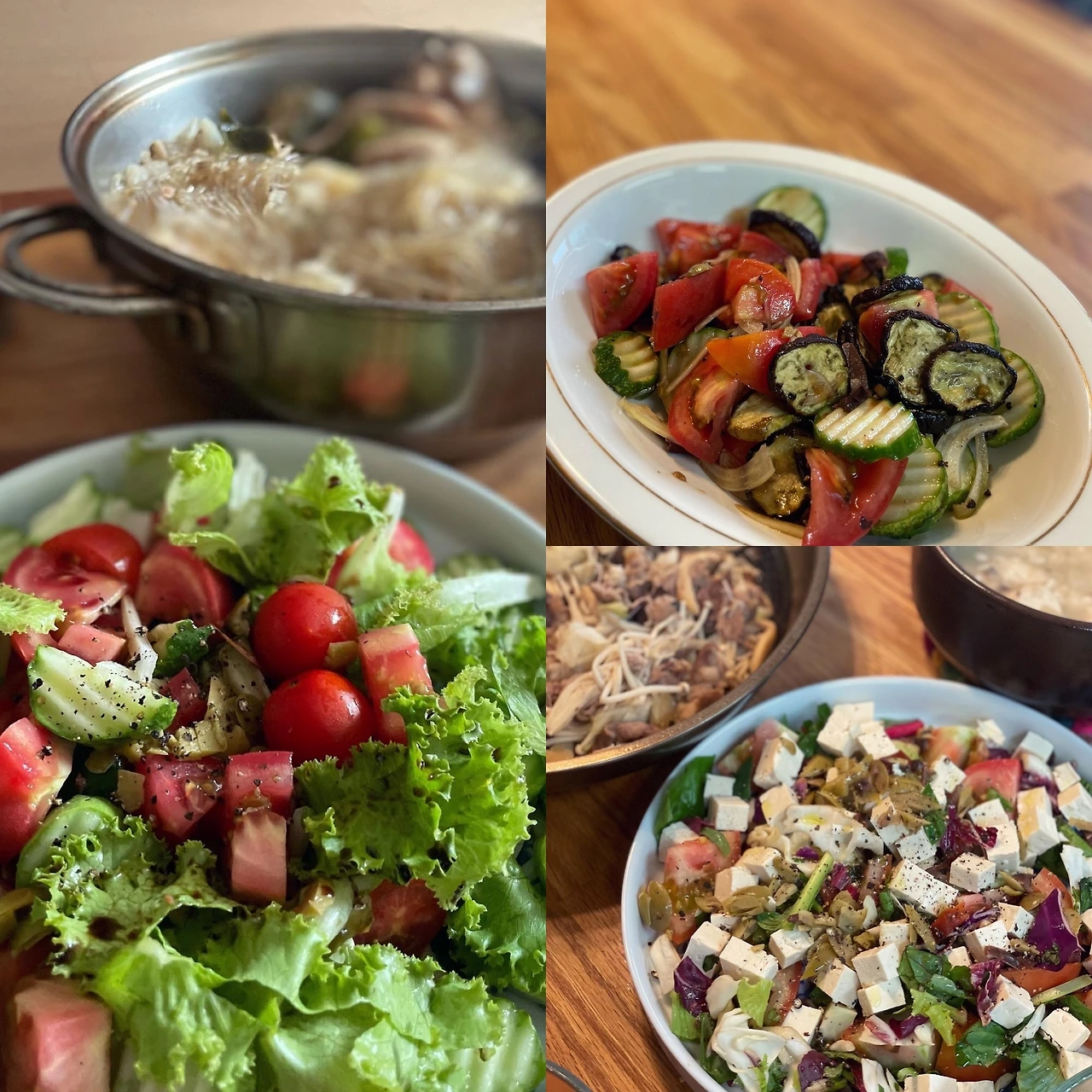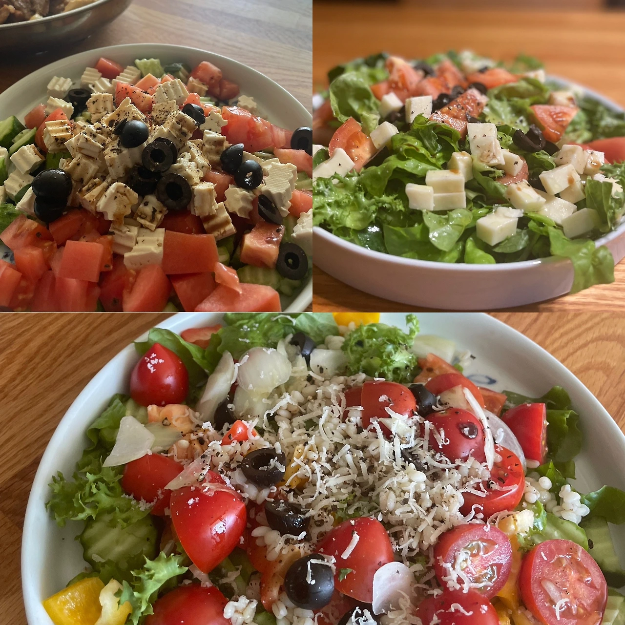 그리스 샐러드에 반해서 맨날 비슷하게 시도한다. 온갖 야채에 올리브유, 발사믹, 소금후추. 올리브 다진 토핑이 있으면 굿.