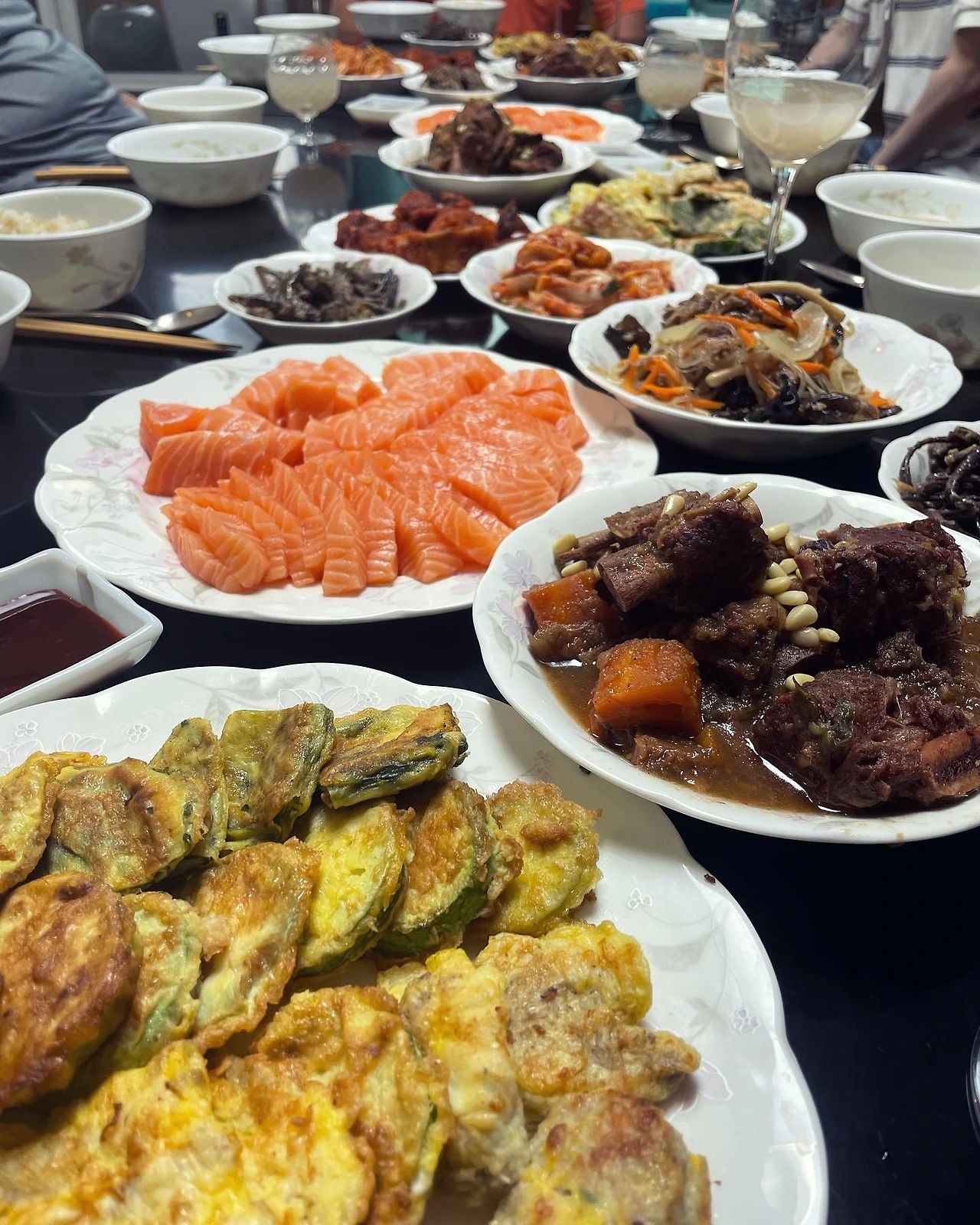 공덕시장 전의 절반은 친정에서 저녁 밥상으로. 근데 동생이 직접 부쳐온 전이 더 맛있다.. 시장에서 줄서면서 내년엔 그냥 다시 부치고 말지, 흔들렸는데 아이고.. 사실 일이 힘든게 아니라, 며느리만 부려먹는 전통의 상징이라 내키지 않는거지. 요리 즐기는 이로서 마음은 안 가는데 손만 쓱쓱 나간다고 할까. 친정 명절 밥상엔 사실 코스트코 연어가 가장 인기다. 울 애들과 조카들 입맛은 또 사뭇 다르다. 뭐든 덜 힘쓰는 방향으로 #마냐명절밥상