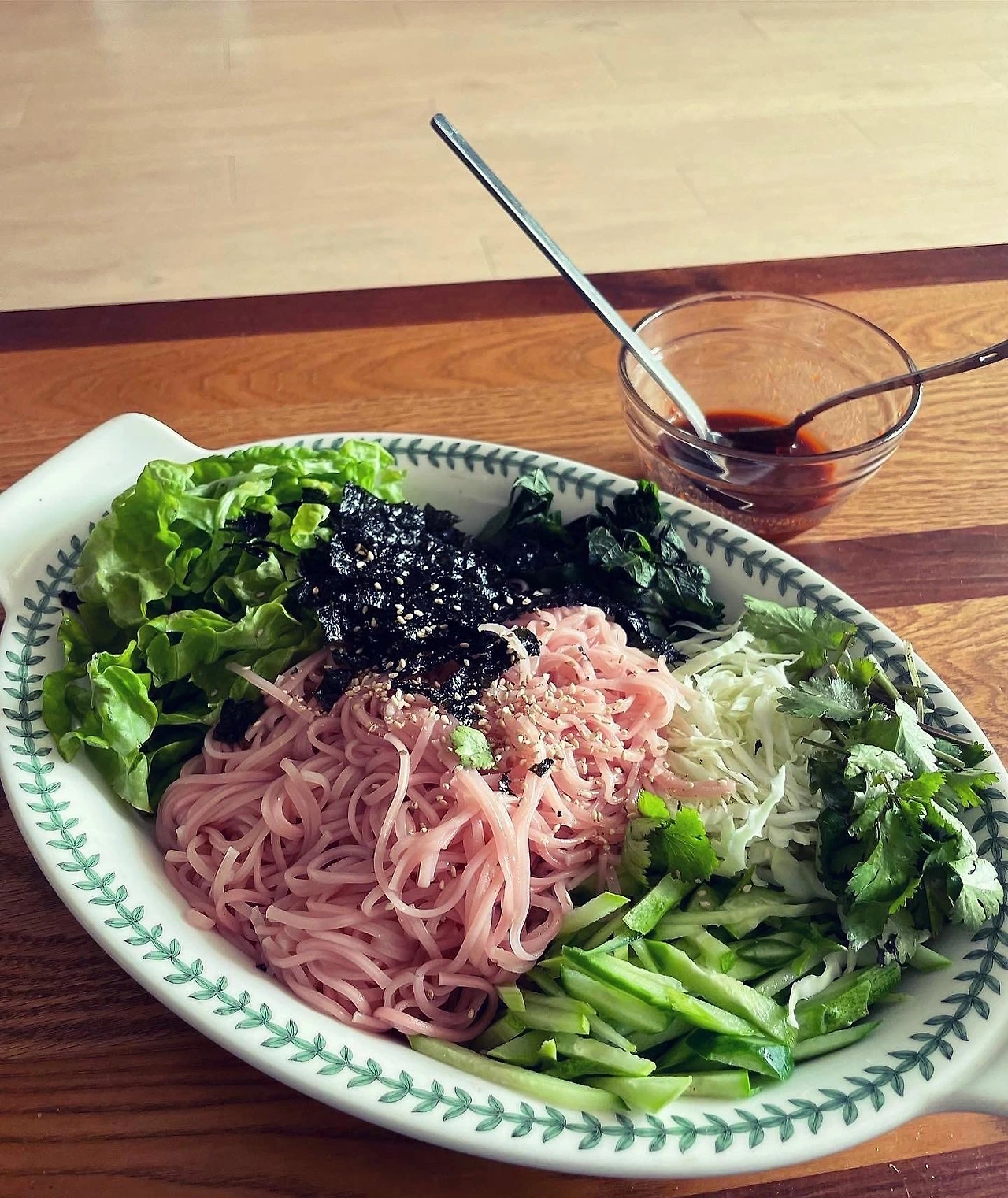 식당에서 먹어본 비빔국수 흉내. 온갖 야채를 국수보다 많이.