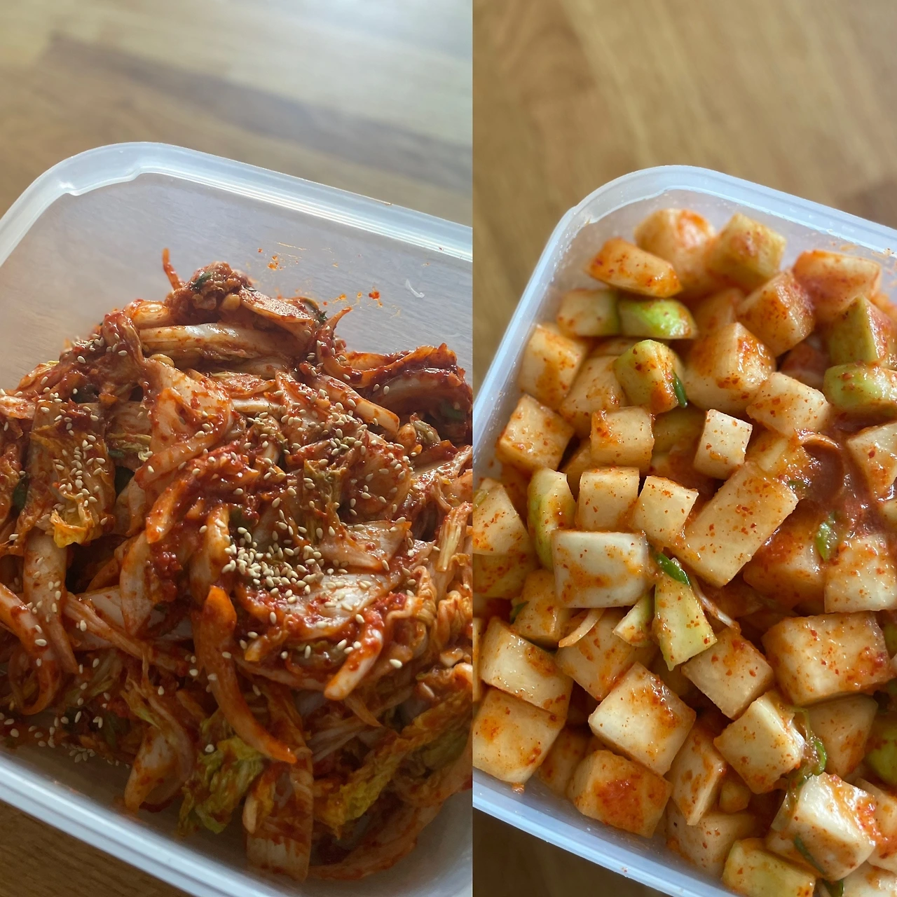 농장 꾸러미에 배추가 있어서 첫 겉절이 도전. 소뿔농장 톡방에서 레서피 얻은대로. 배추 1통에 천일염 150g에 물 뿌려 30분 절였다가 고춧가루10 새우젓4 설탕4 액젓7 다진마늘 2.5 생강조금. 양파 작은거 1개 채져서 버무렸다. 성공. 이건 간이 진했고, 깍두기는 싱거웠다. 이러다 김치 도전할 기세다.
