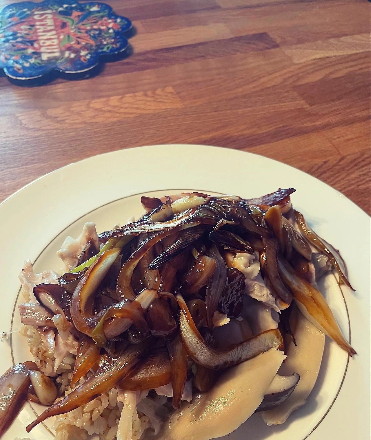역시 야매 싱가폴치킨덮밥 시도. 닭다리만 생강대파 넣고 끓인뒤 얼음물에 식혀 쫄깃하게 살만 발라내고. 오일간장굴소스에 파양파마늘생강 볶아서 소스로 얹었다. 이거 기대 이상이다.