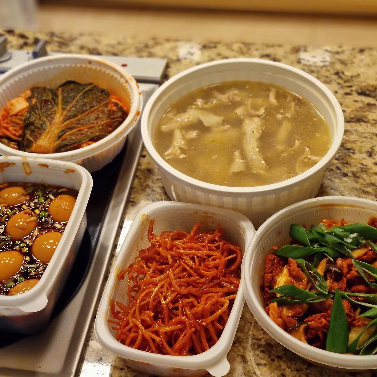 성질 급한 나는 요리도 후딱 한다. 재료 손질과 동시에 가스레인지에 불을 켜고 프라이팬을 달군다. 마음이 더 바쁜 워킹맘 시절 늘 그랬다. 와중에 공들이는 음식이 닭곰탕. 토종닭을 골라 꼼꼼하게 지방을 제거한다. 꽁지와 목의 덩어리 지방 외에 몸 곳곳에 지방을 가위로 잘라낸다. 삼계탕 부속 재료와 대파마늘, 1시간을 끓인다. 끓이면서 기름을 떠내고, 살만 발라내어 다시 강불로 마무리. 일주일 전 닭곰탕 하면서 제육볶음, 마약계란, 오징어채볶음을 준비. 증세 나타나자마자 피난간 가족에게 테라플루, 스트렙실과 함께 배달했다. 나름 정성 인증 맞다.
