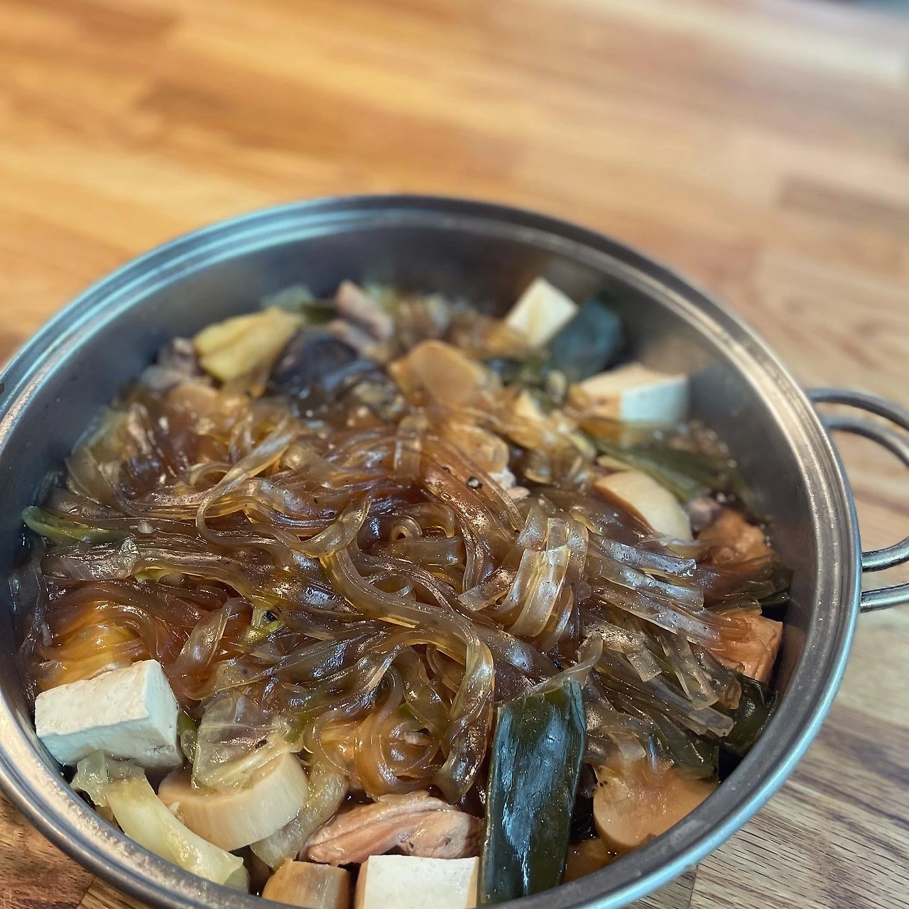 뼈 없는 닭다리 살로 찜닭 할 때 포인트는 넙적한 당면. 짭조름한 감자와 무도 좋지만 다들 당면 러버.