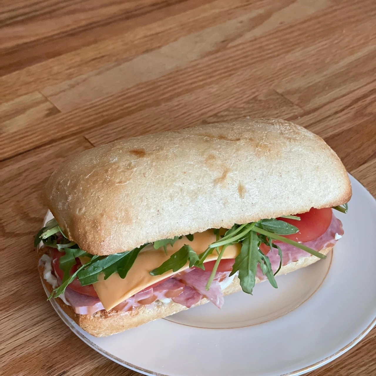 치아바타 에프에 굽고 마요네즈 겨자 듬뿍 발라 햄치즈에 루꼴라 플렉스 샌드위치는 실패할 수가 없다.