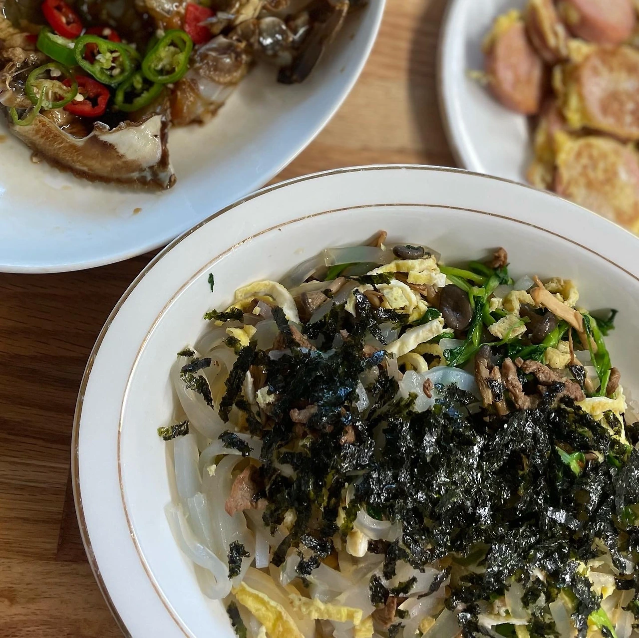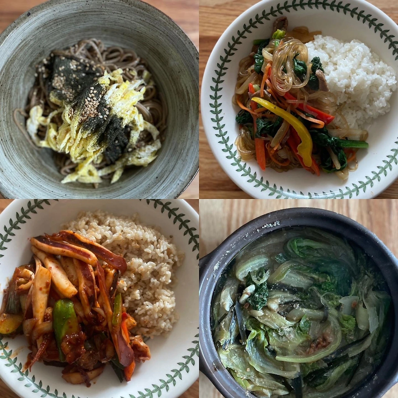 건강식 집중해야할 옆지기에겐 2주 연속 청포묵 무침. 미나리 데치고 지단 채썰고 고기 약간에 김. 참기름과 소금으로 단순하게 낸 맛에 흡족하다. 들기름 막국수, 잡채밥, 오징어덮밥, 배추된장지짐.. #마냐밥상