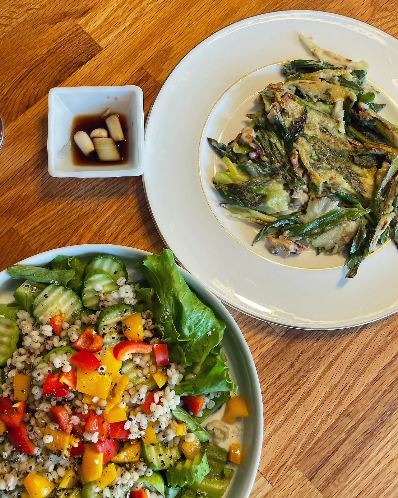 채소 반찬에 꽂힌 와중에 #소뿔농장 꾸러미가 제주서 돌아온 아침에 도착해 마침 채소부자. 식당서 배워온 가지찜부터 더한 #마냐밥상. 식당 쥔장께서 멸치육수를 액젓과 같이 달여서 간하셨다는데 그건 못하고 그냥 쪄서 액젓참기름에 무쳤다. 실한 애호박에 새우젓 한숟가락 더해 찌고.. 와중에 군산 친환경 생금들 찰보리와 외장아찌를 보내주신 다정한 A님. 술지게미, 주박을 걷어내고 씻은 장아찌는 쫑쫑 썰어 입맛을 돋우고..마침내 보리 샐러드 도전. 따로 삶아 식힌 뒤 온갖 채소와 버물버물. 이건 내 취향이다.