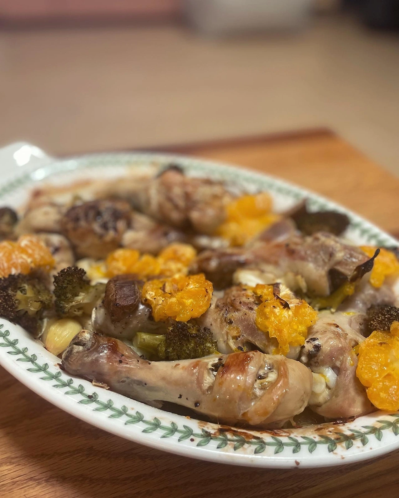 닭다리 레몬구이를 생각하며, 냉장고 귤 처치용 요리. 닭다리 마늘 듬뿍. 브로컬리와 굴까지 오븐에 구웠다. 요즘 다시 마냐밥상은 주말 모드로군.