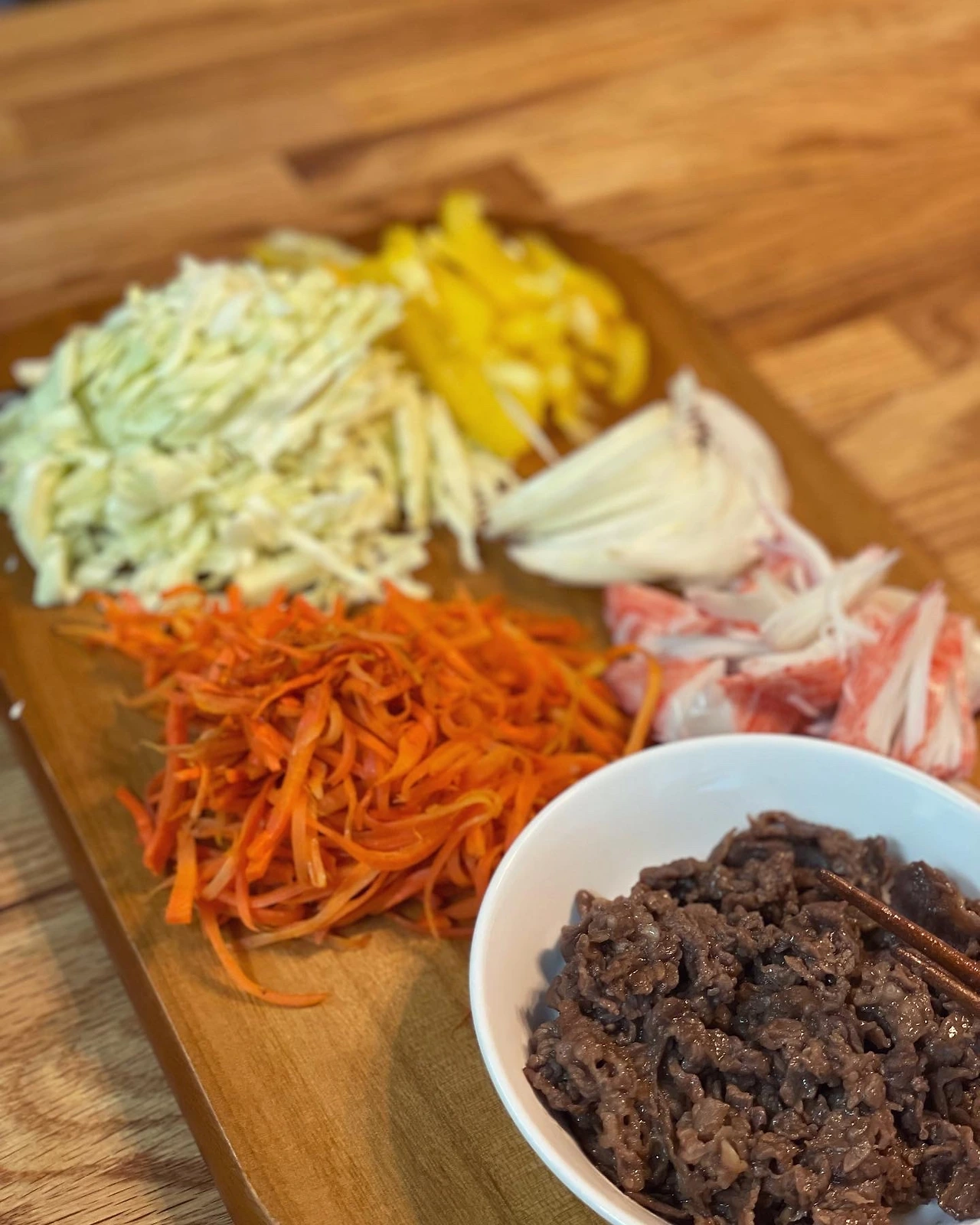 어느 주말에 시도한 월남쌈은 순전히 양배추 처리용. 파프리카는 비싸서 노랑 하나만 사고 당근과 양파 약간, 맛살과 불고기. 온가족 다욧 식단이라 종종 해야지 싶지만 거의 연례행사급 메뉴.