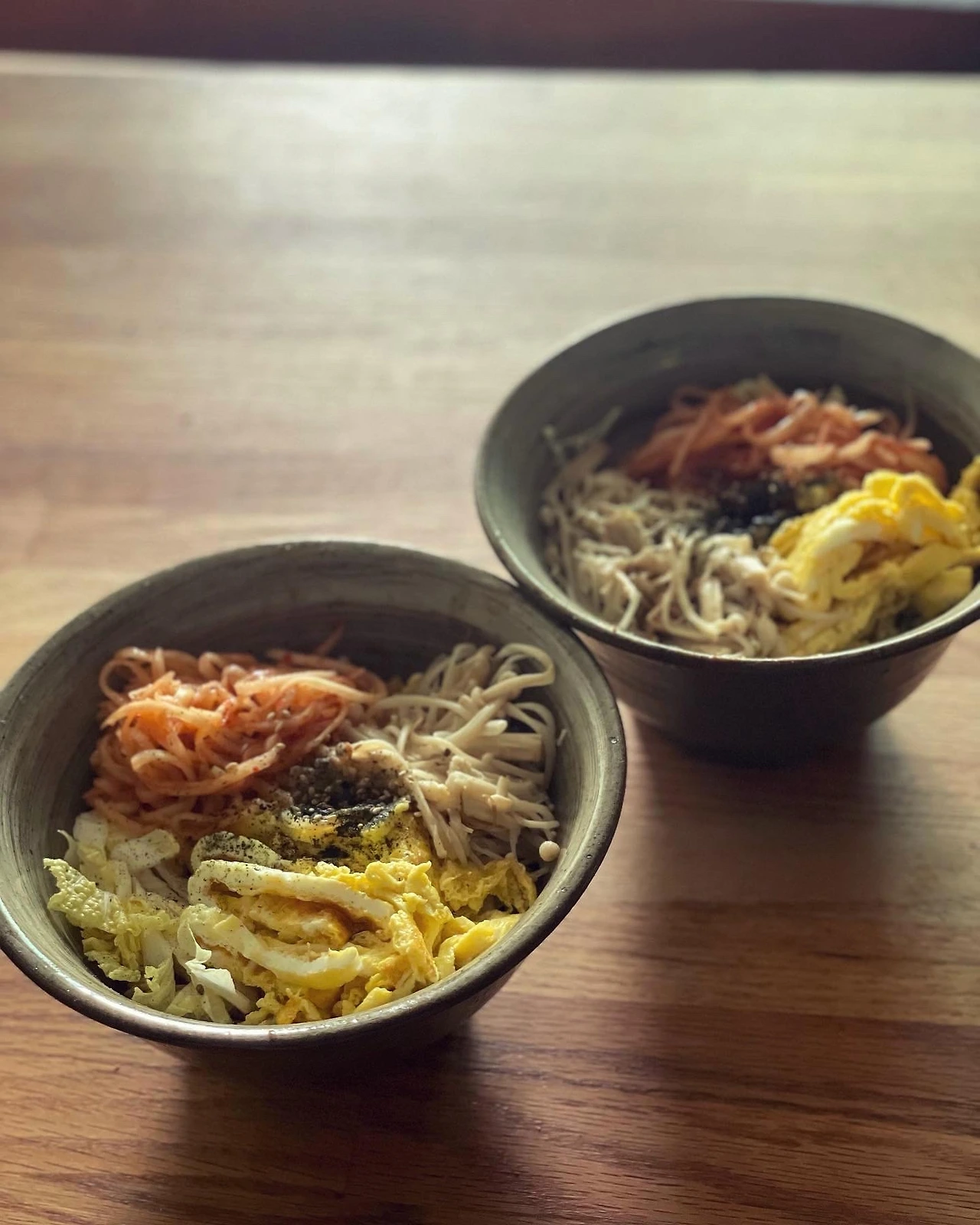 달걀지단, 무채, 팽이버섯 볶음, 배추 등 토핑에 신경 좀 쓴 비빔국수