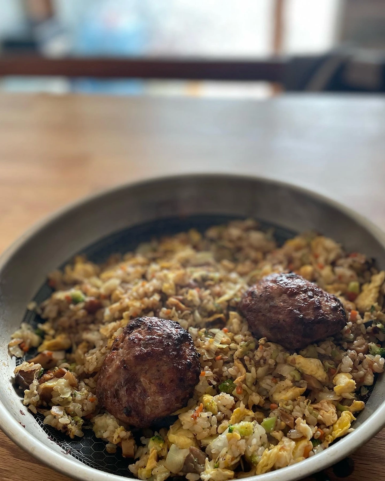 찬밥으로 볶음밥 하면서 얼려둔 함박 두 덩이 데워 엄마 외출나갈 때 애들 점심.