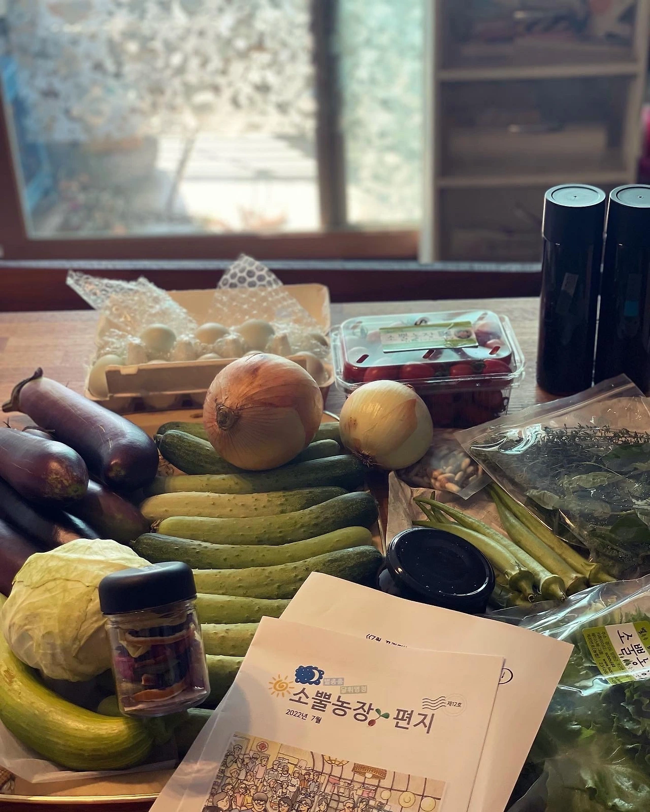 #소뿔농장 채소 꾸러미는 여름에 가장 풍성하다. 새우젓 한숟가락만 넣어 뭉근하게 익힌 호박, 가지나물, 통으로 쪄낸 양배추가 달다. 꾸러미 도착한 날 만난 온니들에게 채소나눔까지 하니 뿌듯하고