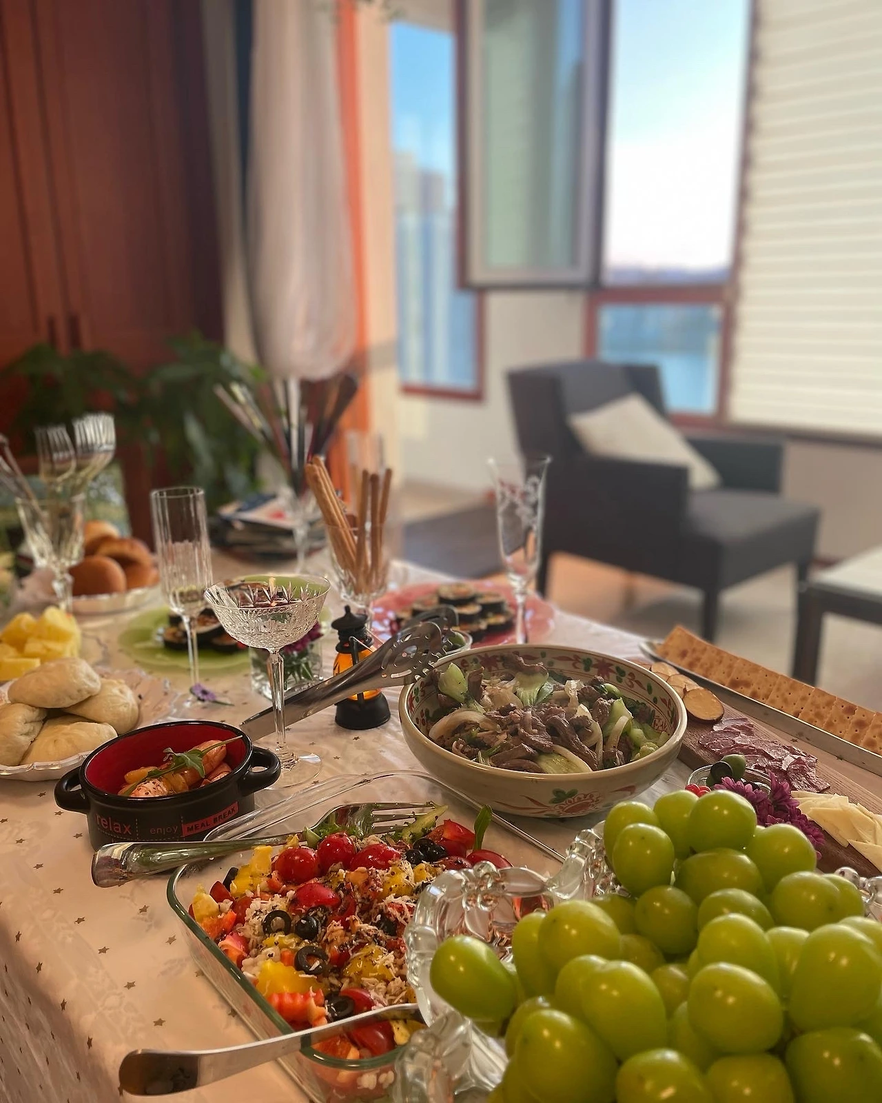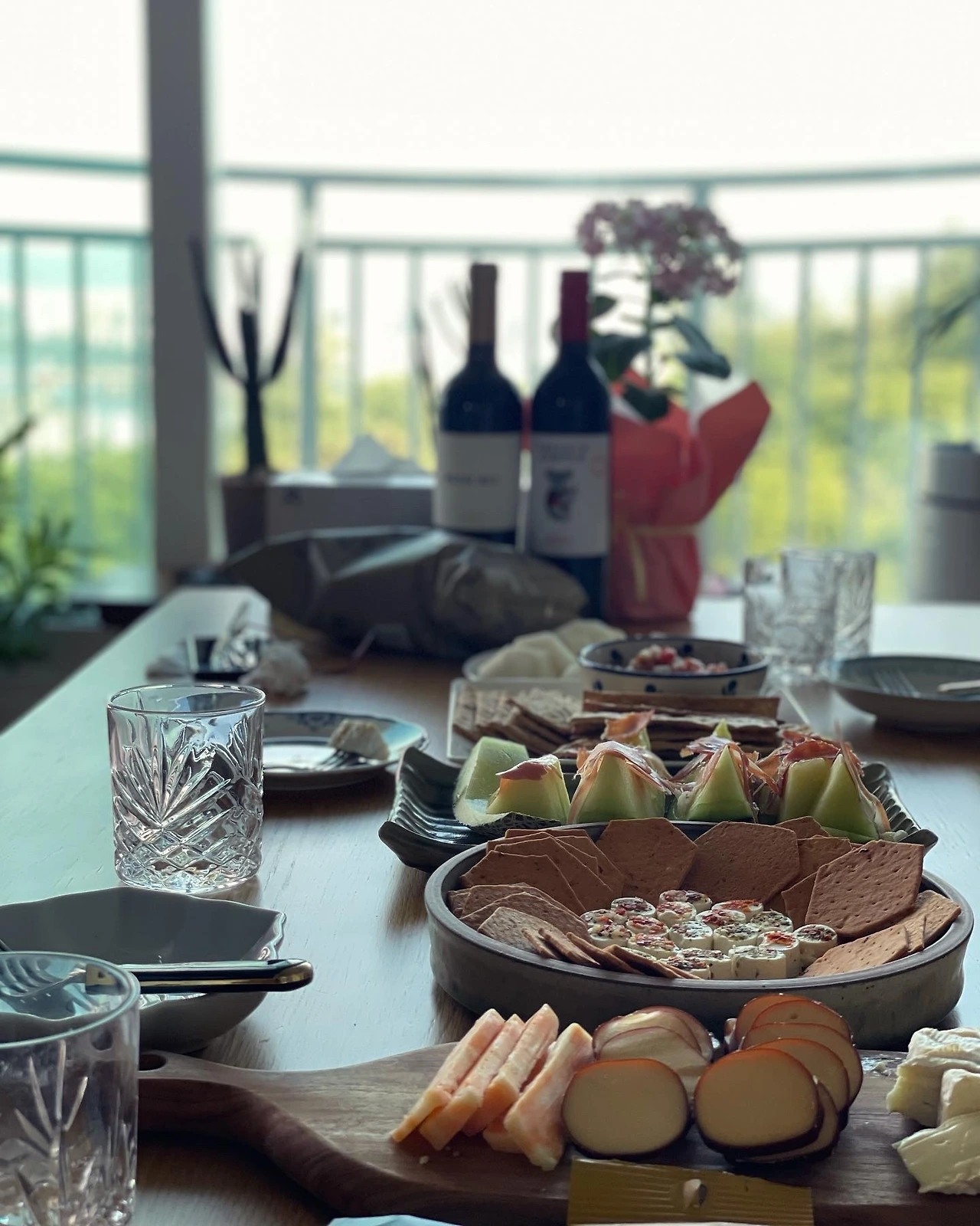K님은 기자를 그만둔 이후, 더 훌륭한 글쟁이. 저 벽돌책에 빽빽하게 붙여둔 포스트잇 앞에서 켜켜이 애쓴 시간을 느꼈다. 누구도 다 읽지는 않았을 거라며 호기롭게 책을 빼어들었다가 당황했다. 세상엔 이런 분도 있다. 모처럼 예쁜 동생들(이라고 하지만, 이쯤되면 다 친구지) 다 불러 한 상 차려주셨다. 거실에서 화창한 봄날의 뷰를 감상하다 야경까지. 달까지 대기시켜 휘영청 밝았다. L은 꽃을 준비했고, 나는 술만 가져가려다, 와인샵 자잘자잘 아이들을 쓸어담아 가져갔다. 그 중 살라미 스틱에 붙은 설명이 웃겼다. ‘개 사료 아님'. #마냐친구밥상 #마냐먹방