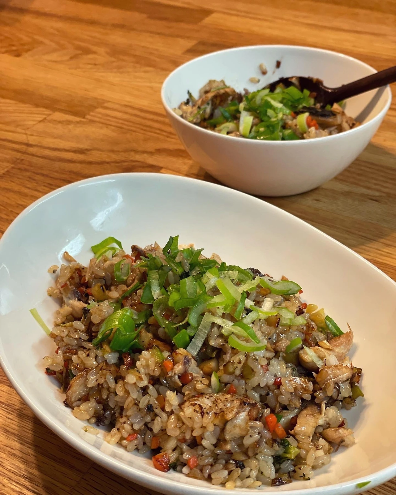 연휴 마지막날 저녁엔 아들과 둘이 오붓하게 고등어볶음밥. 혼밥인줄 알고 암생각 없다가 아들 외출이 취소됐다는 소식에 30분 요리. 대파마늘 기본에 당근과 브로콜리 심지를 다졌고. 대충 고등어 구우면서 옆에 볶기 시작. 팬 한구석에 간장액젓매실청 각 한숟가락 부어 바글 끓이다 뒤적. 갓 지은 밥 넣고 마지막에 참기름. 당연히 맛있습니다..