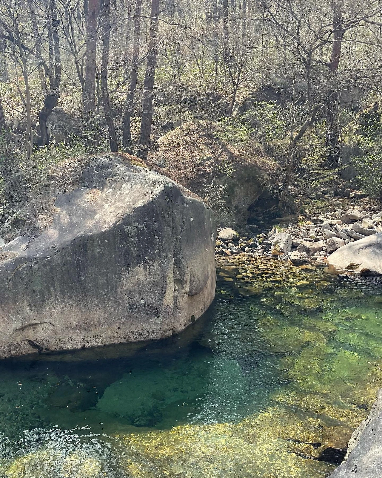 계곡의 큰 바위 이름은 꾸구리 바위. 송아지를 잡아먹을 정도로 큰 꾸구리가 살았는데 아가씨나 젊은 새댁이 지나가면 희롱했다는 설명이 표지판에 나온다. 맑은 물 바닥이 보이지 않을 정도로 깊어보였고, 바위는 영험해보였다. 여자는 고작 물고기 따위에게도 희롱당하는게 당연하듯 만들어진 설화.
