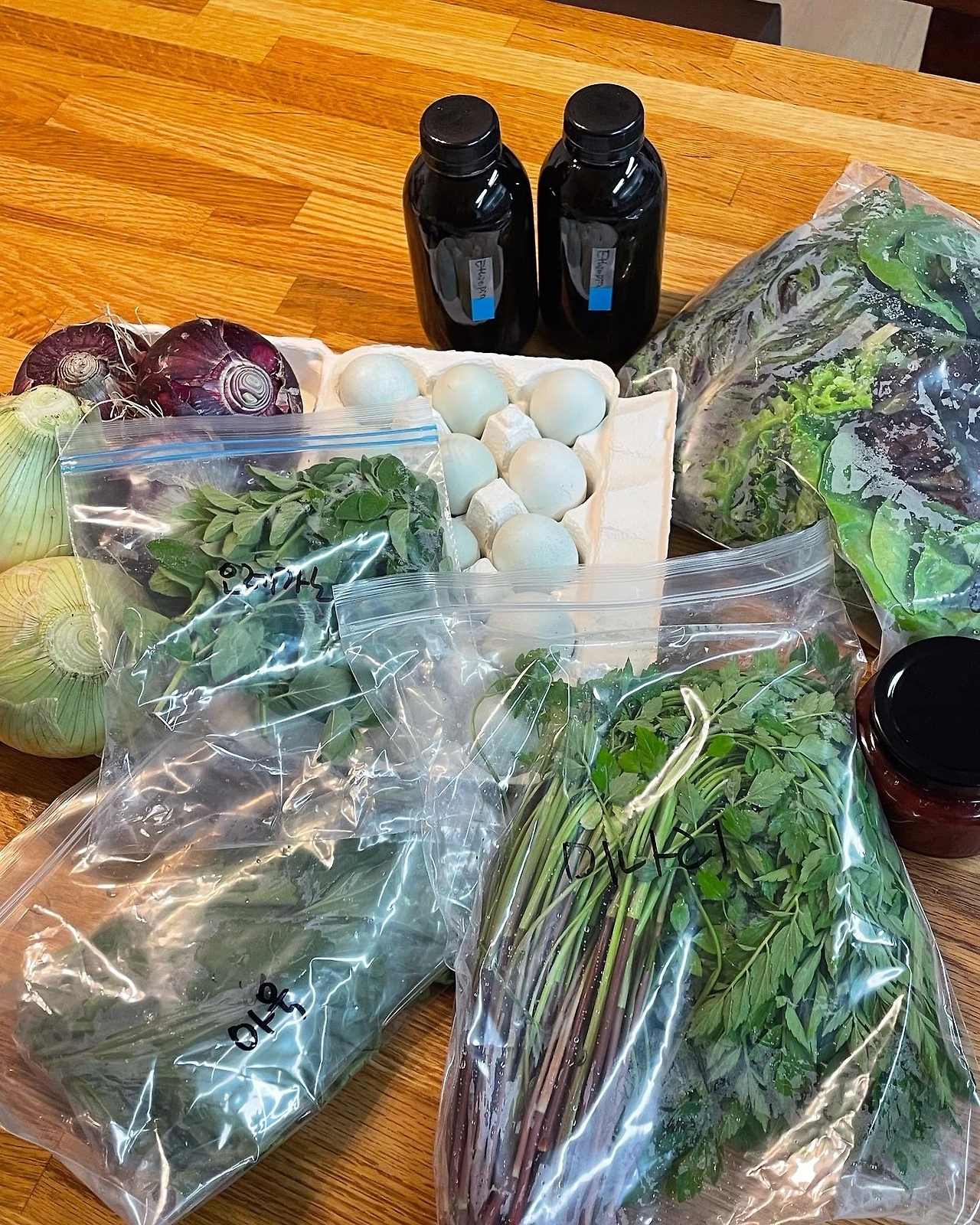 코로나 탓에 3년 만에 드디어 농장을 찾았다. 이 역사적 팜파티 메인 요리는 비름나물, 망초나물, 국화과 뭔 나물, 민들레 등등을 넣은 비빔밥. 이런 나물 호사는 자제할 수 없어서 숟가락질 바빴고, 갓 딴 보들보들 미나리와 오징어 넣은 전도 기막혔던 #마냐친구밥상. 매달 꾸러미 받는 농장주 분들도 다들 재첩국, 얼갈이김치, 나물, 막걸리, 식혜, 수정과, 아이스크림, 마들렌, 바리바리 뭔가 준비했다. 때마다 호텔급 디저트를 구워오시는 현정님의 까눌레, 피낭시에는 오늘도 대단했지만, 보답하는 마음으로 배우고 익혀 드디어 레몬 쿠키, 그레놀라 쿠키, 고디바 넣은 초코쿠키 구워오신 지연님도 다정했다. 소뿔 꾸러미를 통해 먹을 것을 받으면 사랑받는 느낌이란 걸 아셨다나. 난 도저히 솜씨 자랑할 엄두가 안나서 아이스박스에 맥주를 채워갔다.