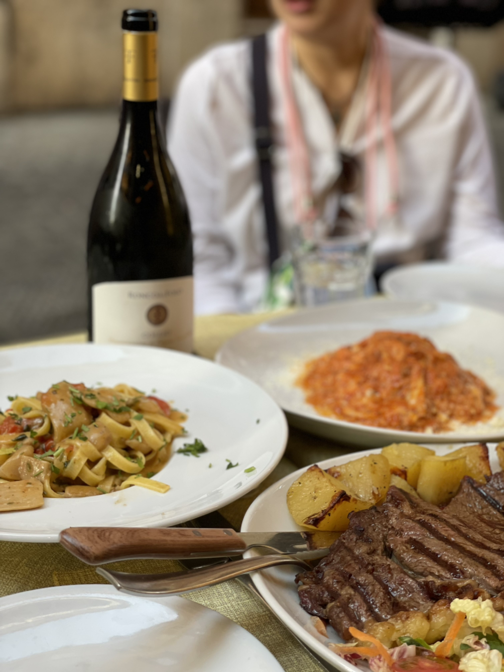 어느새 관광객들 사이에서 골목을 걷다가, 큰 길에서 안쪽으로 들어간 곳에 호젓한 식당을 발견했다. 사람 적고 딱 영화 속 분위기의 테이블. 메뉴 탐색 전문가로서 페투치니 포르치니(13유로), 라자냐(11유로), 비스테카 디 만조(20유로)를 주문했다. 와인은 전문가 S가 편하게 골랐다. 두번째 병은 편하게 하우스 와인으로 주문했는데 어라, 가게 이름이 라벨에 붙어있다. 뭐지? 뒤늦게 검색해보니 1920년에 시작한, 100년 된 알 반타지오 Al Vantaggio 식당. 와이너리가 있단다. 이 하우스 와인이 무려 12유로다. 우리는 아예 한 병을 더 사서 나왔다. 페투치니는 생면 고소함에 기막힌 맛. 라자냐는 멋드러지는 모양새가 아닌데 그냥 엄청 맛있다. 비스테카는 이 가격에 이렇게 푸짐하다고? 넷이서 실컷 먹고 와인 세 병까지 총 99.5유로. 신났다, 신났어.