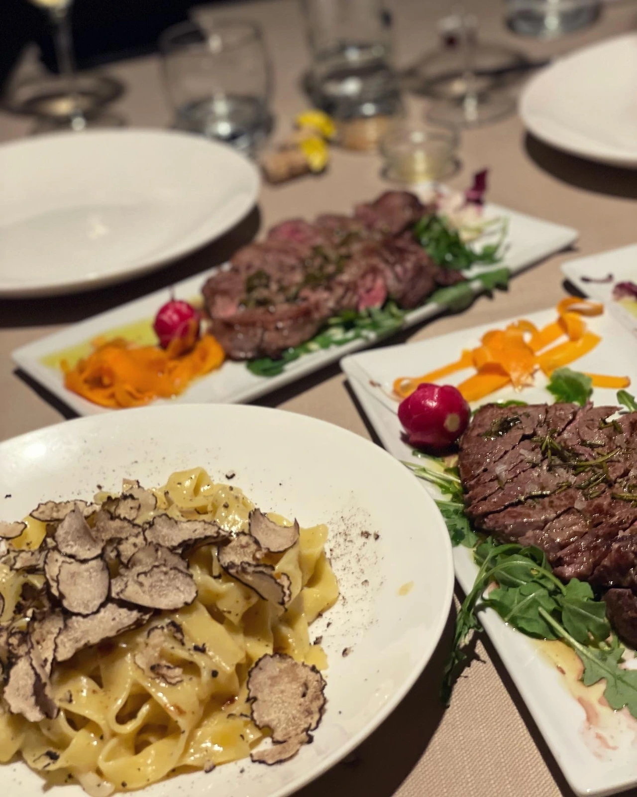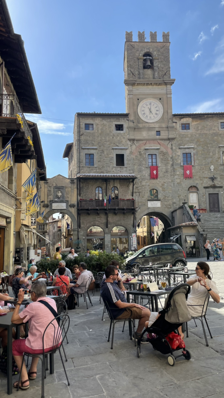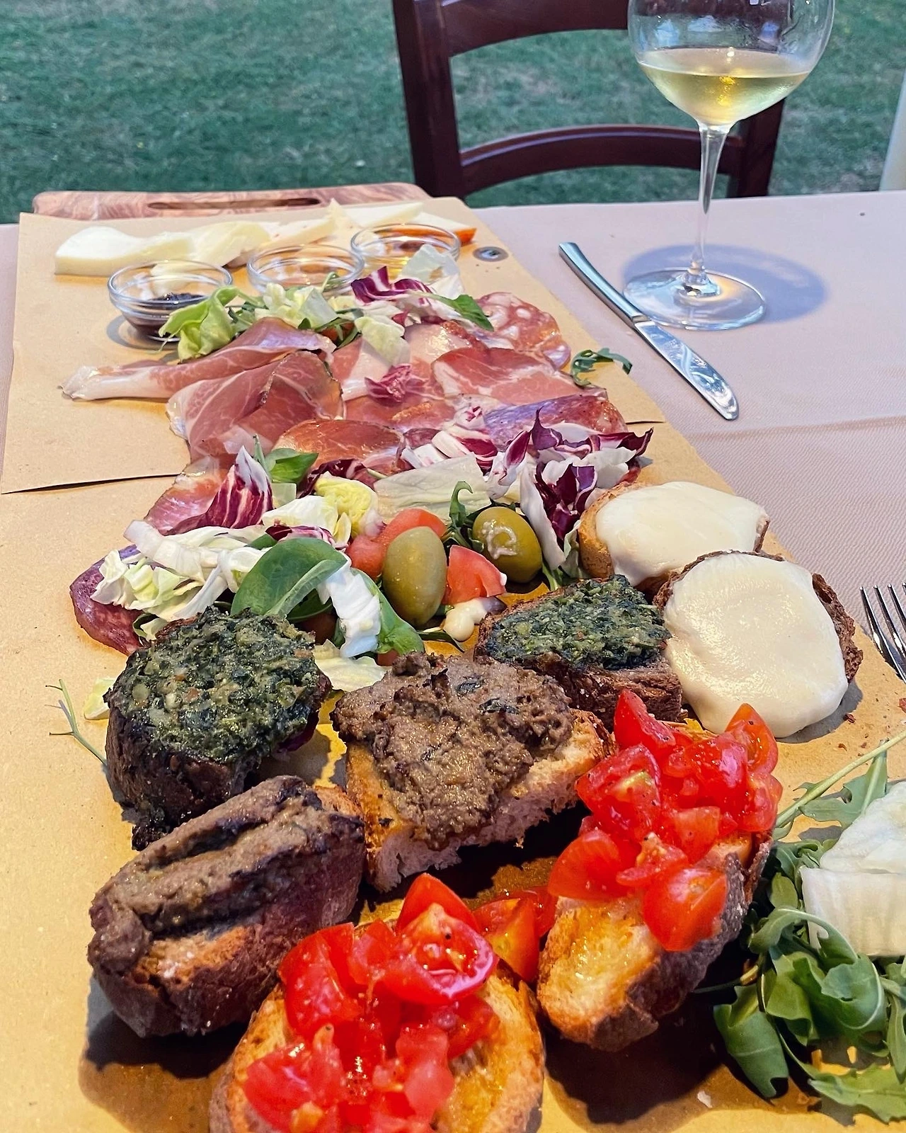 이날 저녁은 인생에서 잊지 못할 호사였다. 맛도 로마의 좋았던 음식들보다 괜찮았고 가성비조차 믿기지 않는 수준. 와인 14유로. 햄과 치즈 브루케스타 플레이트 22, 트러플 탈리아텔레 15, 스테이크 16유로. 다만 스테이크 메뉴 하나 주문한게 3개 나왔다. 합쳐서 메뉴 셋 얘기했는데 직원의 영어가 짧았…몹시 친절했기 때문에, 그리고 기분이 워낙 좋아서 그냥 먹겠다고 했다. 화이트 와인은 물론, 낮에 본 코르토나 쉬라까지 와인 세 병은 마시고, 한 병과 남은 고기는 싸들고 숙소로 돌아왔는데.. 이 저녁이 총 137유로. 맛있는 음식을 저렴하게 즐겼다는 말로는 이날 저녁을 설명할 수 없다. 포도밭 옆에 사이프러스 나무가 우거졌고, 테이블 주변에는 올리브 나무가 은은하게 빛났다. 밤이 깊어갈수록 정원의 불빛이 더 아름답게 빛났고, 아이보리 커튼의 캐노피 아래에서 우리는 각자 영화를 찍는 기분이었다. 음악이 흐르는 밤, 어느새 정원에는 우리만 남았고, 기꺼이 스텝을 밟으며 와인에 젖어드는 시간.