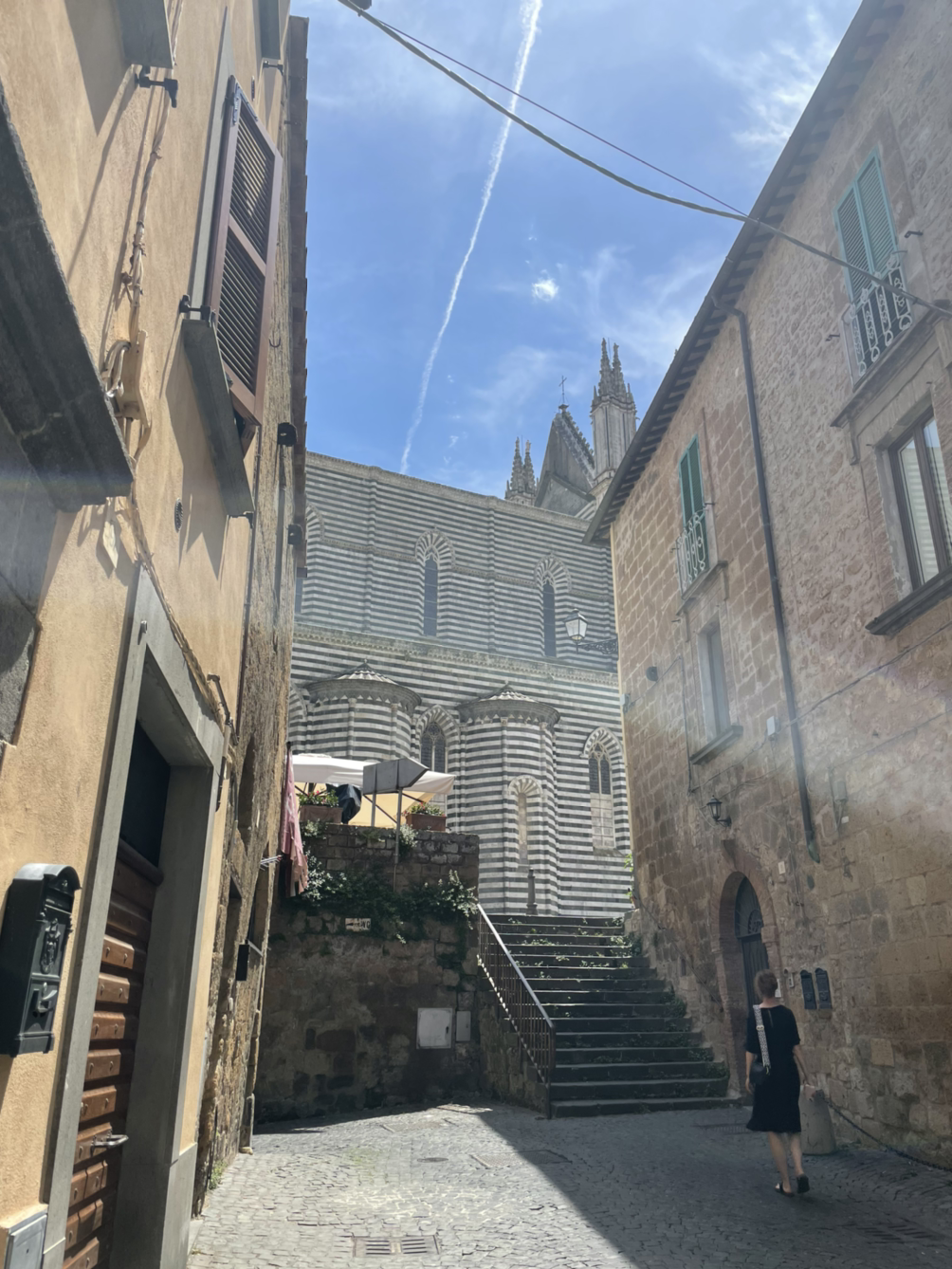 오르비에토를 사기캐로 기억하게 된건 저 골목 부터다. 건물 사이로 두오모가 보였다. 특이한데?