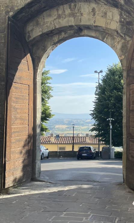 오르비에토는 잠깐 들린 곳이고 소연의 토스카나에서 가장 가보고 싶었던 곳은 코르토나 Cortona. 바로 다이안 레인의 그 도시다. 실제 원작자인 프랜시스 메이어스는 소연이 살고 있는 샌프란시스코 출신이고, 코르토나에 불현듯 멈춰서 브레마솔레 라는 집을 덜컥 샀단다. 막막한 미래를 미리 걱정하는 대신 일상을 유지하면서 단단해지는 과정이 어땠는지 모르겠지만, 하여간에 'Under the Tuscan sun(1996)'은 50개국 넘는 곳에 번역됐다니, 많은 사람들에게 분명 위안이 되는 이야기였겠지. 바로 그런 곳 코르토나. 차를 밖에 세우고 아치형 돌문으로 들어선다. 오른쪽 사진은 나올 때 찍었다.