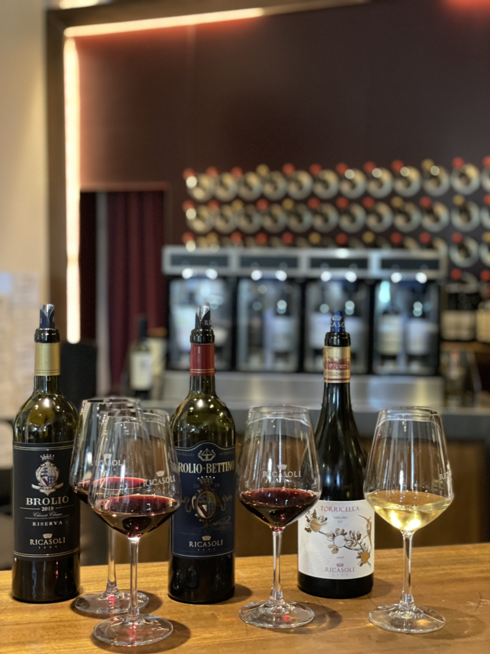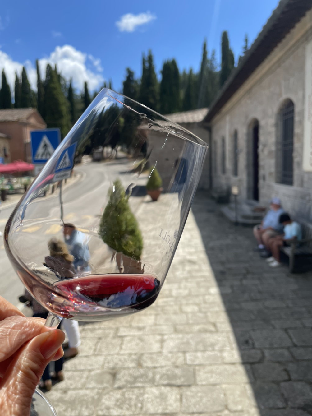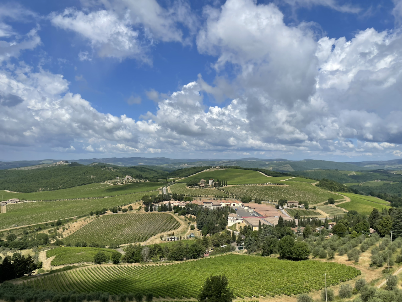 끼안띠 지방으로 넘어가서 브롤리오 와이너리..인줄 알았더니 고성이다. Castello di Brolio. 연두색 포도밭이 끝없이 펼쳐지고, 올리브그린이라는 흐릿한 녹색을 이제 알게됐다. 깊숙이 넣어두었던 우산을 꺼내들었는데 구경하고 나올 무렵엔 비온뒤 쨍한 하늘. 인당 6.5유로 와인 한잔 맛보는 건데 이런 성과 뷰 구경이 패키지라니. 절대 놓칠 수 없는 풍경이다. 발도르차 황금들판에 취해있던 우리는 순식간에 맑고 투명한 토스카나의 하늘에, 푸른 포도밭에 반했다. 눈부셨다. 딱 한 잔 맛만 보고 간다.