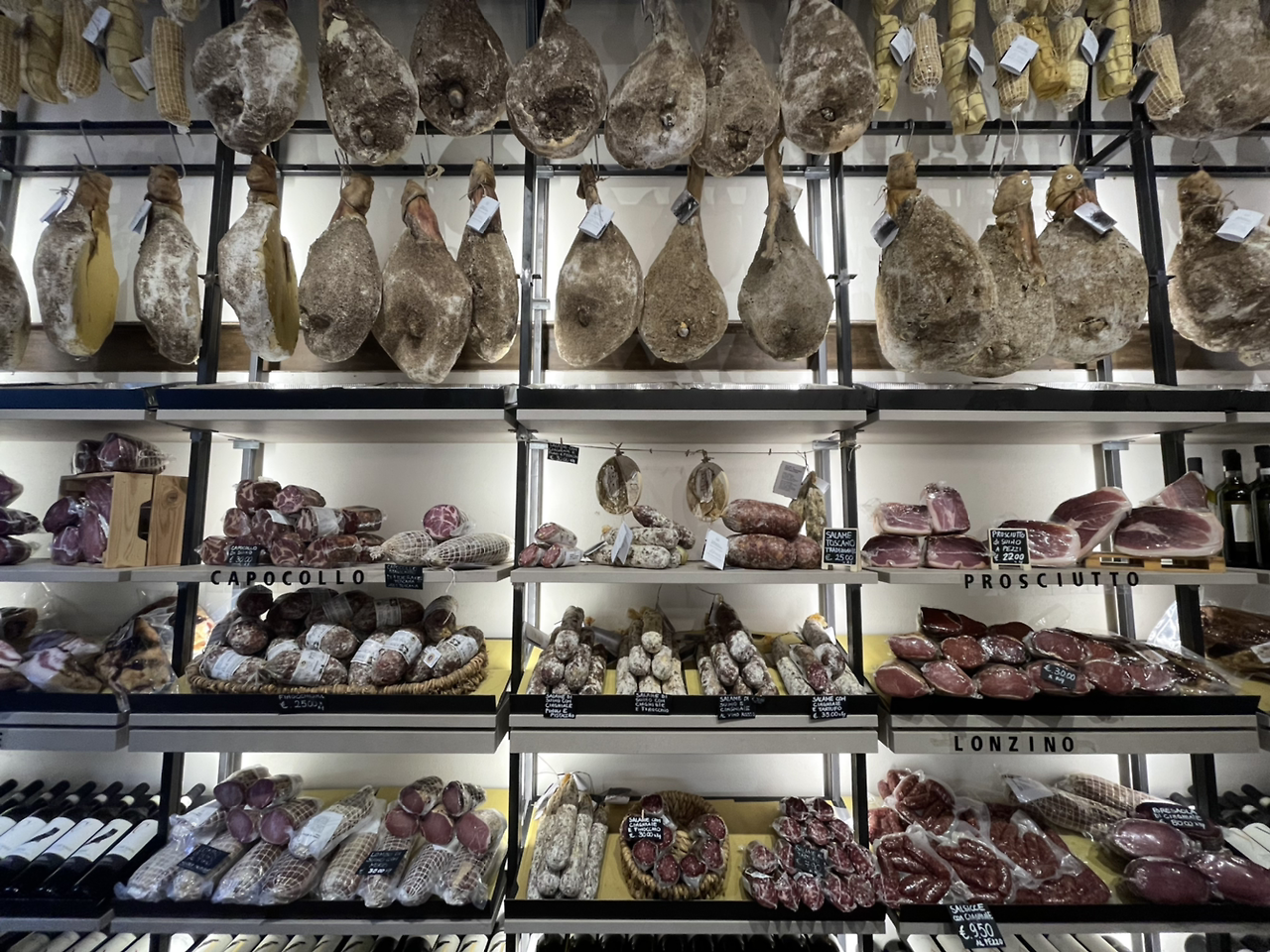 멧돼지 박제가 쫌 많이 거슬리지만.. 살루미 집도 장난 아님.. 우리는 보통 토스카나 햄은 100g 3.5유로인데 멧돼지 햄은 8유로... 14유로 어치 햄을 샀다.