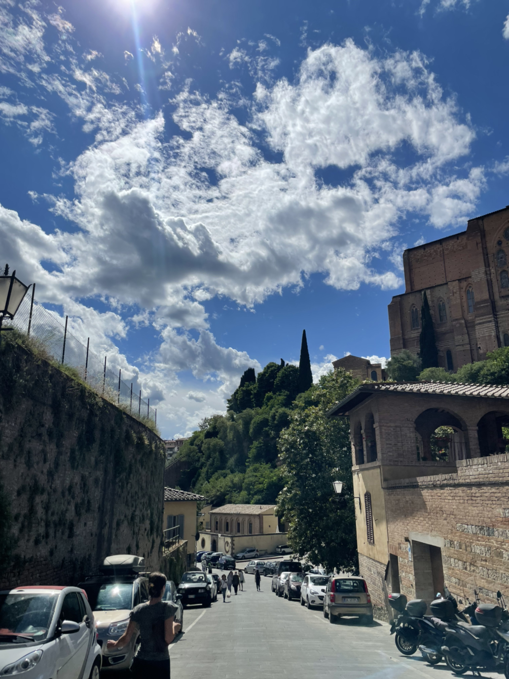 다음 목적지는 시에나. 토스카나로 와서 다닌 곳이 모두 작은 마을 급이라면 이젠 도시. 역시 주차하고 도심으로 들어가야 한다. 비온 뒤 하늘이 열일하기 시작했다. 그냥 하늘만 봐도 다르구나. 검색해서 찾은 평점 4.7 식당 Osteria degli Svitati 음식은 훌륭. 앞의 단체손님 탓인지 40분 기다린게 좀 아쉽지만. 멧돼지 트리빠(곱창스튜, 10유로)와 안초비 곁들인 치즈 요리(7.5)가 정말 맛있었다. 대구 요리와 Pici 파스타도 기본 이상. 와인 한 잔 곁들여 45.5 유로. 사실 시에나 도심에도 괜찮은 식당 많아보인다.