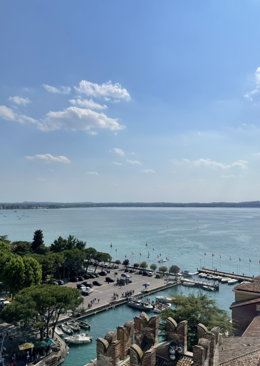 가르다 호수는 이탈리아에서 가장 크다. 가장 예쁘다고 순위를 매길 수 없지만 크다. 주변엔 온통 고급 주택과 호텔. 우리는 호수 한쪽 비교적 소박한 숙소에 머물렀다. 맘에 드는 합리적 선택이다. 숙소에서 시르미오네까지 20분. 베로나에서 곧바로 시르미오네로 가서 일단 성부터 올라갔다. 카스켈로 스칼리게라. 또 계단? 올라가면 좋기야 하겠지. 툴툴대면서 헉헉대면서 올랐다. 이날 건강앱이 21층 올랐다고 한게 이유가 있었구나.. 올라가면 뭐, 역시나 좋다. 가르다 호수 전경을 360도 바라보는게 나쁠리가 없잖아! 바람도 햇볕도 딱 좋은 시간. 그런데 냉정한 친구들.. 입장료 내고 올라갔는데 바로 내려가자고? 사실 우린 마음이 급했다. 한낮의 가장 뜨거운 시간도 피했지만, 더 서늘해지기 전에 가야했다.