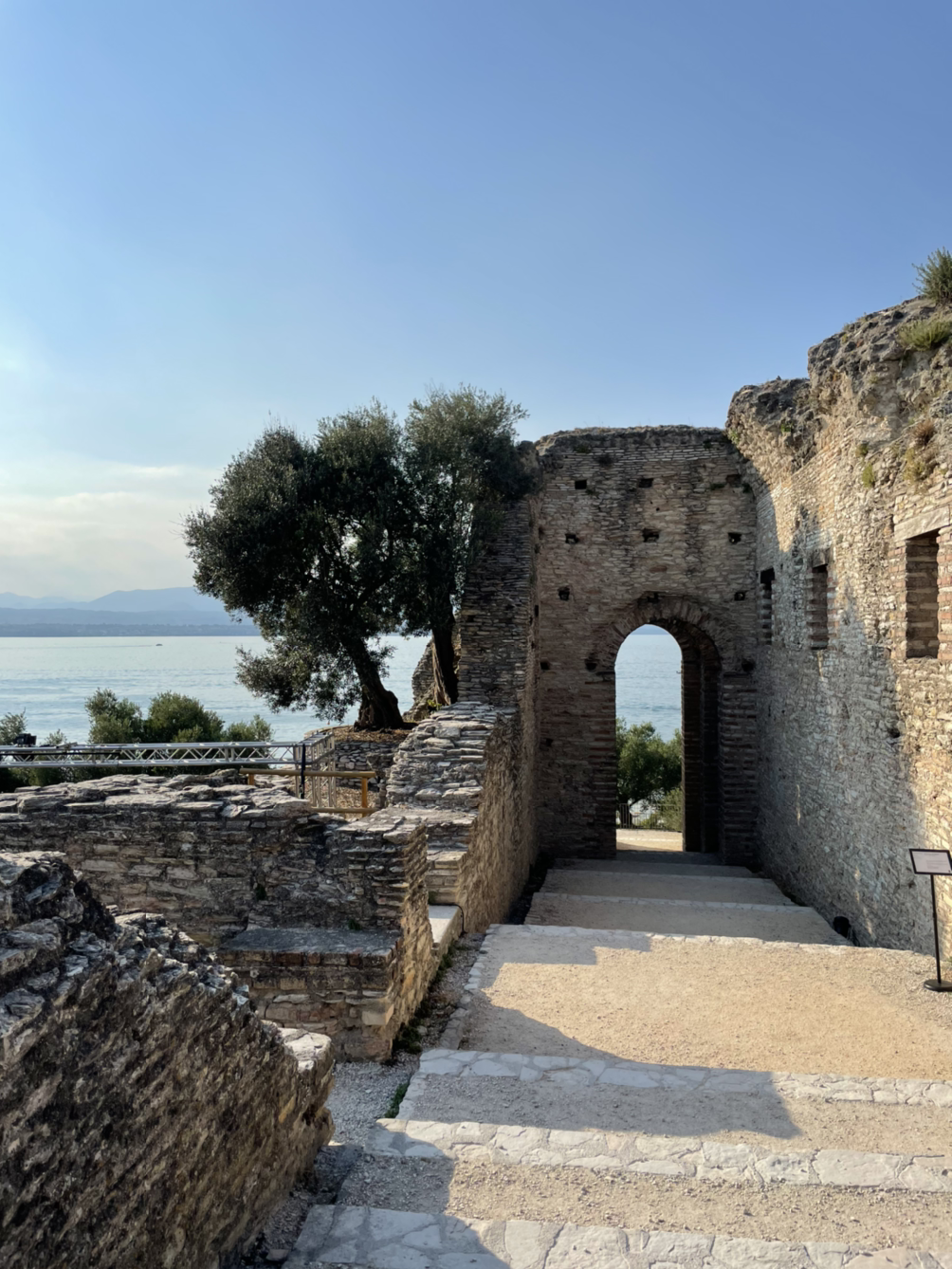 호숫가에서 몸을 말리다가 문득 생각났다. 콜미바이유어네임 때문에 시르미오네에 왔는데, 생각보다 큰 동네. 영화 촬영장소가 어디지? 호수에서 노는게 넘 좋다고 난리치다가 중요한걸 까먹었잖아! 급히 검색했더니 걸어서 20분.. 주저하는데 친구들이 말했다. 또 언제 와서 보려고? 호수를 따라 걷는 길도 좋았지만, 그로테 디 카툴로 유적지 Archaeological site of Grotte di Catullo, 1세기 로마인들의 휴양지였다는 설명도 어디서 봤는데.. 이러니 둘이 사랑에 빠지지! 시간을 초월한 아우라가 공간 가득하다. 오래된 돌들이 가지런하고, 석벽의 선 너머 호수가 반짝거린다. 가르다 호수만으로도 아름다웠는데 2000년 전 시간의 무게가 고요하게 다가온다. 우리 같으면 '콜미바이유어네임' 촬영장소 표지판이 여럿일텐데 그런 티가 어디에도 보이지 않는다. 사실 이 유적은 그런 홍보를 필요로 하지 않는다. 압도적으로 아름답고 눈부시다..