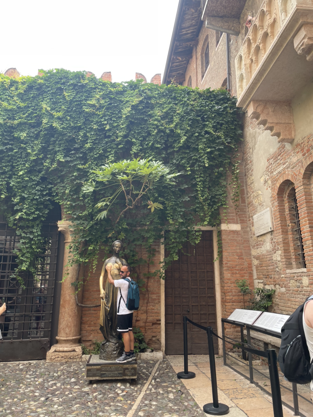 베로나에는 줄리엣의 집이 있다. 셰익스피어가 왜 베로나를 배경으로 했는지 모르지만, 1세기에 이미 아레나를 건축할만한 유명한 도시였겠지. 줄리엣의 집에 들어서는 순간 난 싸늘해졌다. 줄리엣 동상의 왼쪽 가슴을 만지면 사랑이 이뤄진다는 속설이 있다더니 진짜 난리였다. 줄서서 가슴을 만지는 남자들. 줄리엣 나이가 13살이었는걸? 동상 가슴을 만져야하나? 인어공주 동상 가슴도 맨질맨질 닳았다더니. 투덜댔더니 동양의 남근석도 여자들이 많이 만지지 않더냐는 얘기가 나왔다. 그건 아들 낳으라는 압박 탓이지.. 로미오와 줄리엣의 침대까지도 관광상품인게 괜히 속쓰렸다. 사랑에 나이를 따질건 아니겠지만.. 무튼, 저 발코니로 사람이 올라간다는 건 불가능해보인다. 인근 로미오 집도 봤는데 한산하다.