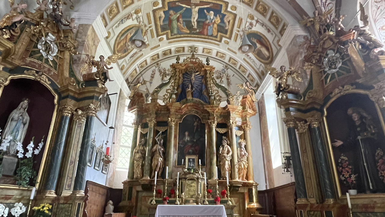 막달레나 교회에는 동네 주민들의 묘가 있다. 예쁜 꽃들을 정성스럽게 심어둔 묘. 아주 작은 교회이지만, 내부의 제단은 또 소박하지만은 않다. 우리도 속삭이며 잠시 경건해지는 시간.