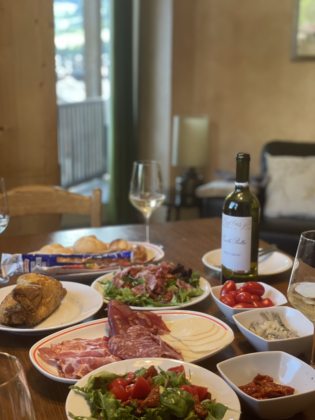 드디어 돌로미티 두번째 숙소, 코르티나 담페초의 한 아파트다. 요즘은 점심 때 식당 빵을 싸들고 와서..햄치즈와 과일, 샐러드를 더해 저녁을 즐긴다. 어제는 올리브, 오늘은 썬드라이드토마토와 앤초비까지. 장본 걸로 차리는데 5분. 와인을 마시며 서로 사진을 교환하고 깔깔대고 그렇게 날이 저문다. 우린 내일 일찍 일어나야 한다.
