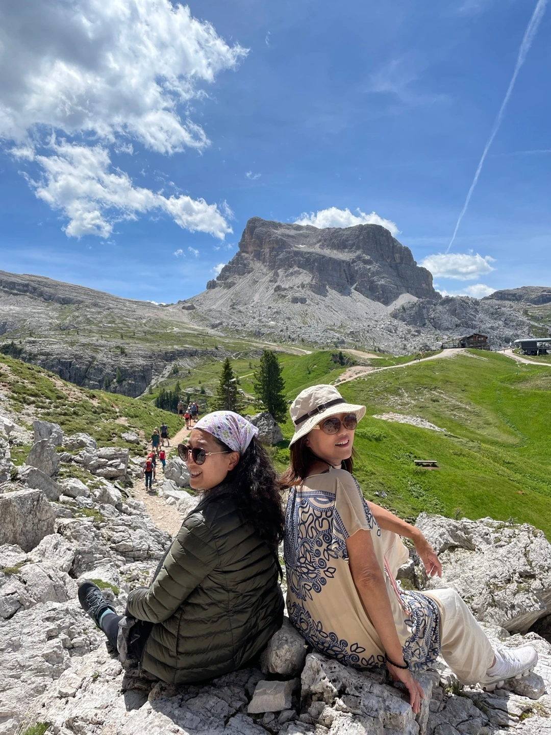 돌로미티의 오르티세이 Ortisei 를 떠나 코르티나 담페초 Cortina d'Ampezzo 로 가는 길은 꼬불꼬불 굽이굽이 산길이었다. 돌로미티의 돌로마이트 석벽 사이로 낸 길을 따라 연이 차를 몰았다. 좁은 도로에 자동차와 오토바이, 자전거가 같이 달린다. 길 전체가 절경인데 여행자끼리 신경써야 할게 여럿이다. 자전거 여행자는 우리가 조심했다. 그들은 맞은편에서 오는 차량에게 수신호를 해주면서 좁은 도로의 상황을 예의바르게 전했다. 오토바이는 위험하게 달리는 주제에 매연까지. 쳇. 우리는 계속 아아아.. 비명을 지르며 감탄만 이어갔다.