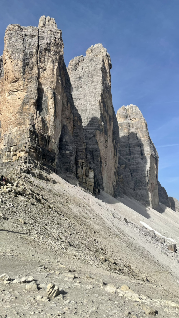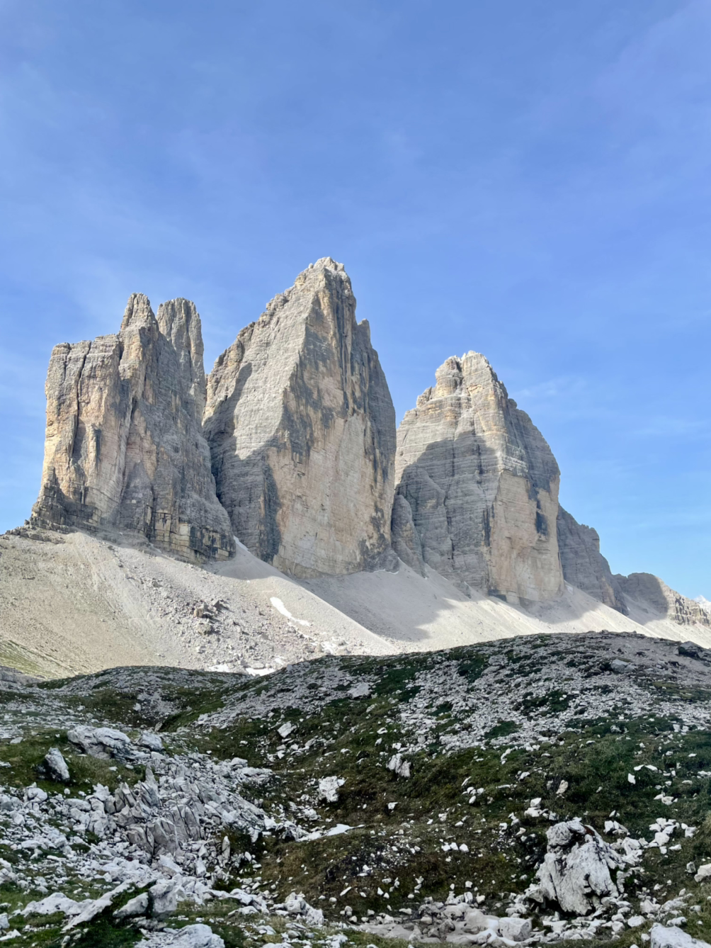 왼쪽에 벽처럼 보이던 돌산은 어느새 세 개의 모습을 분명히 드러낸다. 트레치메를 눈높이에서 보는 이 순간이 중요하다.