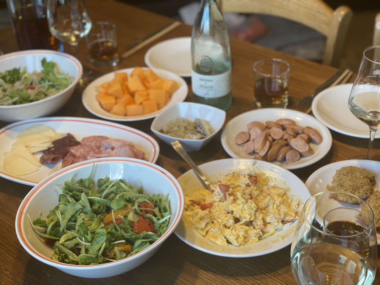 저녁은 와인 세 병에 온갖 음식까지 43유로에 장을 봤다. 9유로 와인 평점이 4.3 이라 괜히 신났고.. 간만에 계란 요리도 해보고..파프리카 절임과 정어리 절임, 올리브로 샐러드를 만들었다. 장 봐서 이런 #마냐밥상 차리는데 요즘 5분인데 오늘은 10분? 독일 분위기의 동네라 살라미 대신 소세지도 샀다. 뭔들.