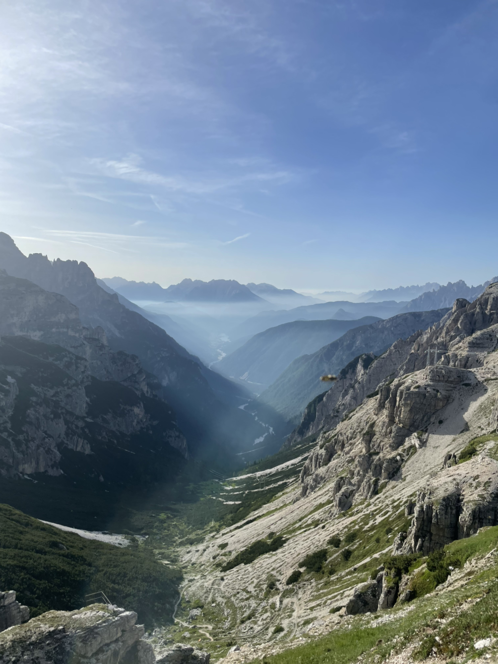 내 인생 모토가 모퉁이 너머 어떤 길이 펼쳐질지 모르는게 재미있지 않냐는 거다. 원대한 목표를 정한게 아니라 열심히 살다보면 그 다음에 어떤 도전이 기다려도 할 수 있겠거니, 그렇게 살았다. 그런데 모퉁이 너머 뭐가 나올지 모르는 설레임이, 때로 복병을 만난다는 걸 알았다. 그 깊은 협곡을 다 내려오다니..아래 사진에 보면 트레치메 봉우리가 저 위에 빼꼼 모습을 보인다. 원래 옆에서 보던 거다. 길은 바닥으로 이어진다.
