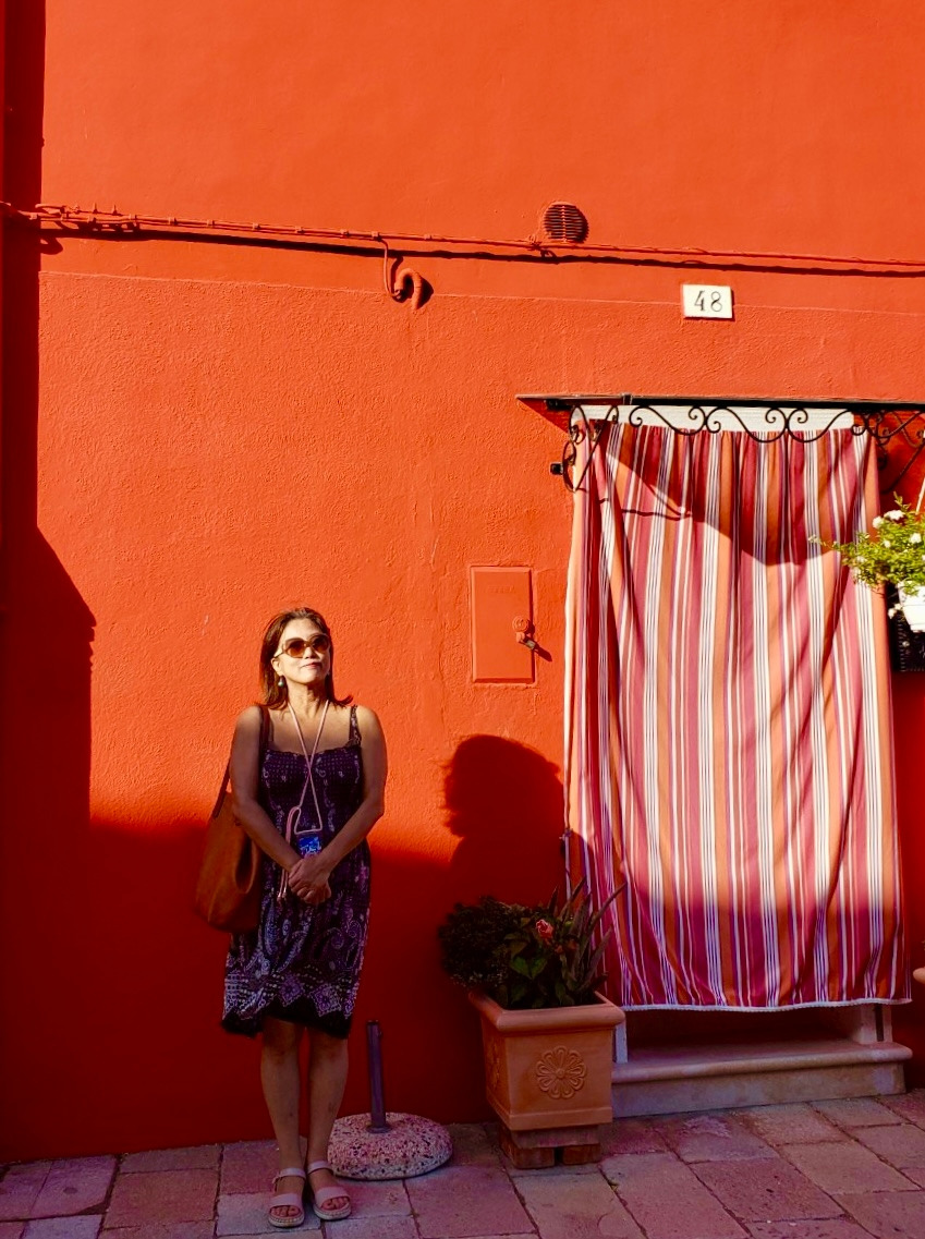 실컷 사진 찍은 날이고, 예쁜 공예품을 무라노가 아니라 부라노의 작은 가게에서 샀다. 나만 그런게 아니라 연과 딸기 모두 홀려서 샀다. 베네치아 온 가게들마다 비슷한 유리 제품이 아니라, 진짜 다른 곳에서 볼 수 없는 멋진 물건들을 파는 작은 가게. 대를 이어 만들어왔고, 눈이 아프도록 며칠씩 수작업한다는 아주머니 홧팅. 색 고운 배경에서 사진 하나 자랑하지 않을 수 없네.