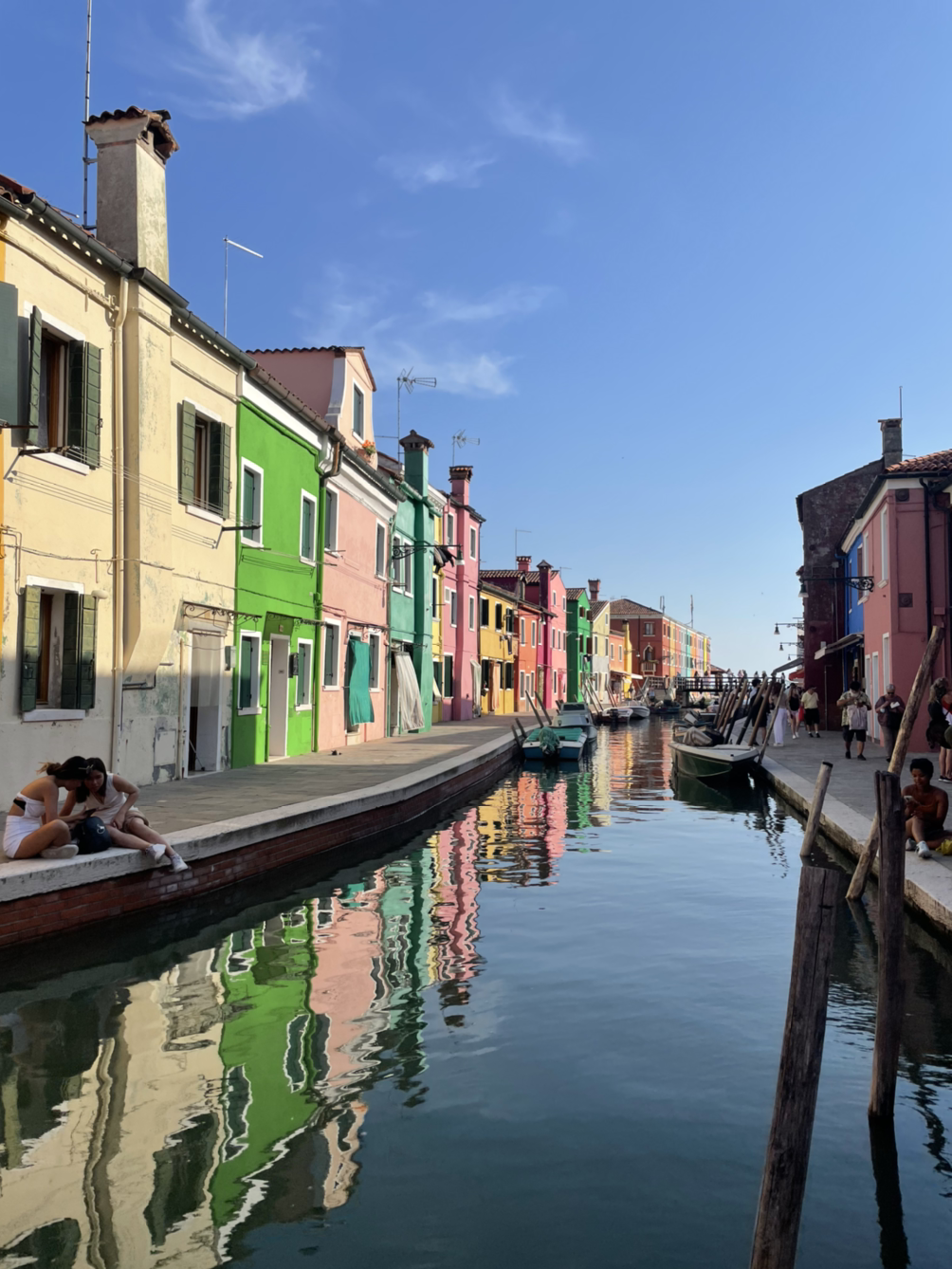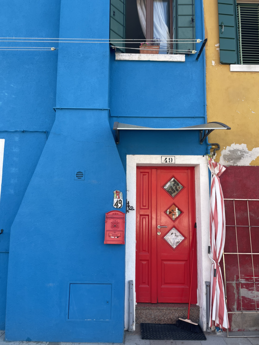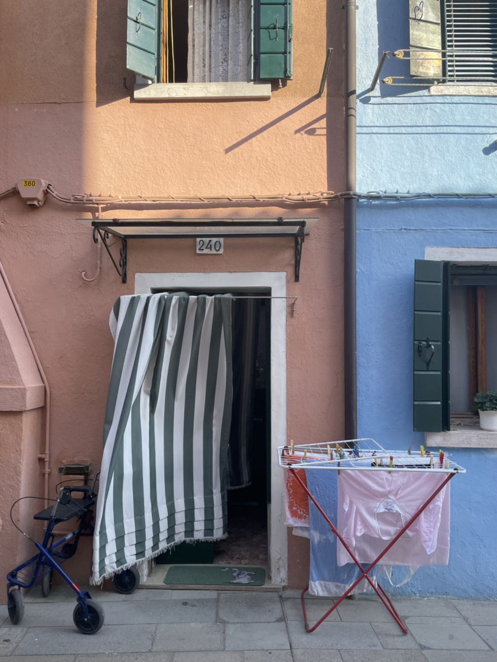 무라노에서 부라노로 곧바로 갈 수 있을줄 알았지만.. 수상버스를 타려는 줄이 넘 길어서 포기. 20분 거리의 숙소로 일단 귀환했다가.. 한낮의 열기를 피해 5시10분 부라노행 수상버스를 탔다. 무라노 섬보다 베네치아 구시가지 관광지에서 타는 편이 줄이 짧다. 낮에는 지치지만 5시 넘어가면 바람이 한결 시원하다. 재충전이 가능한 숙소의 지리적 위치와 수상버스 일일권 덕분에 만들어낸 기회. 그리고 알록달록 예쁜 거리를 만났다. 베네치아와 무라노섬 등의 건물이 세월에 빛바랜 흔적을 고스란히 드러내는 반면, 부라노 섬의 거리는 낡은 건물에 곱게 화장을 해서 예뻐지는데 성공했다. 오후 6시 넘어가는데 여전히 햇빛은 찬란하고, 물위의 그림자는 알록달록 살아있다.
