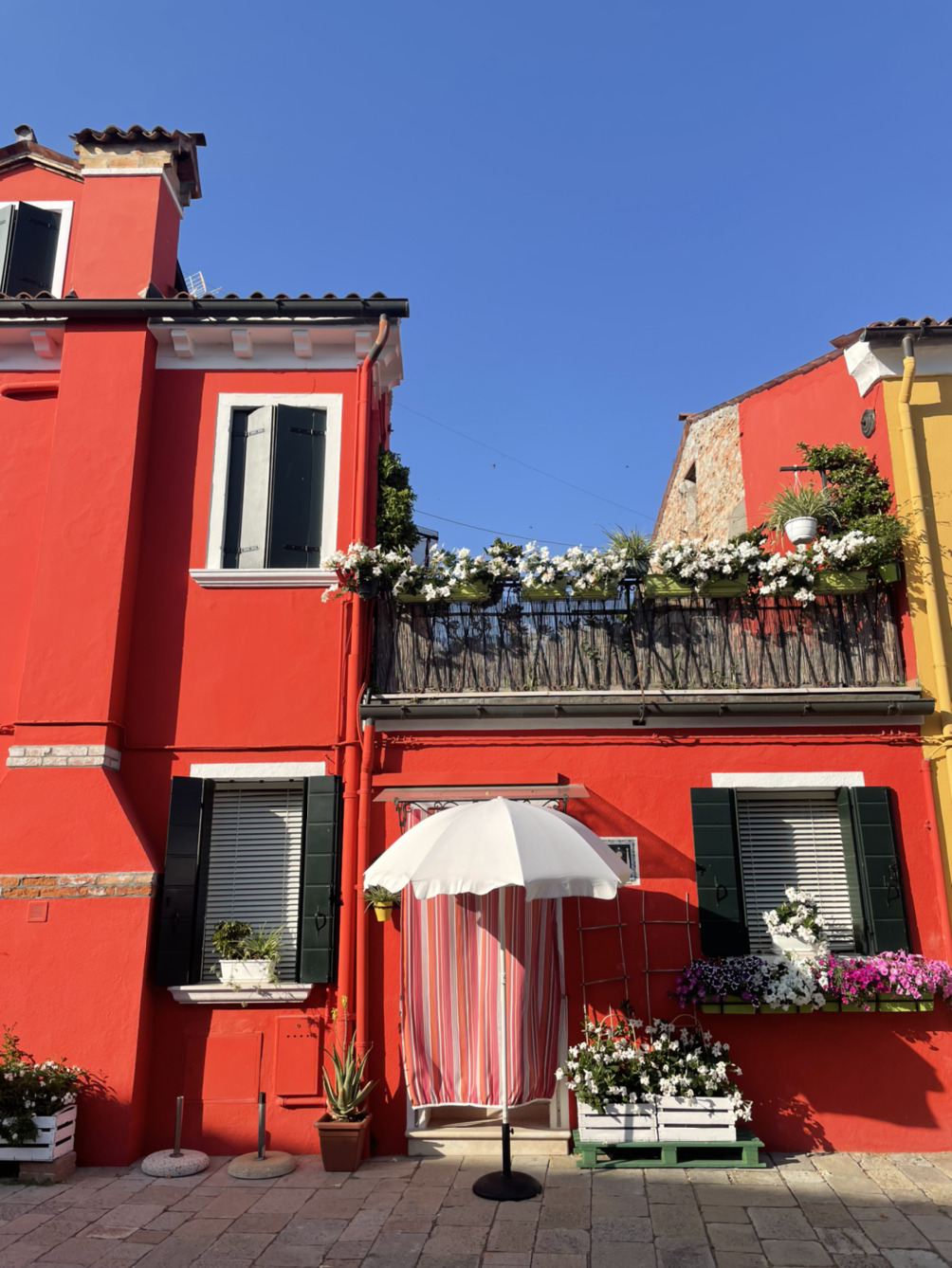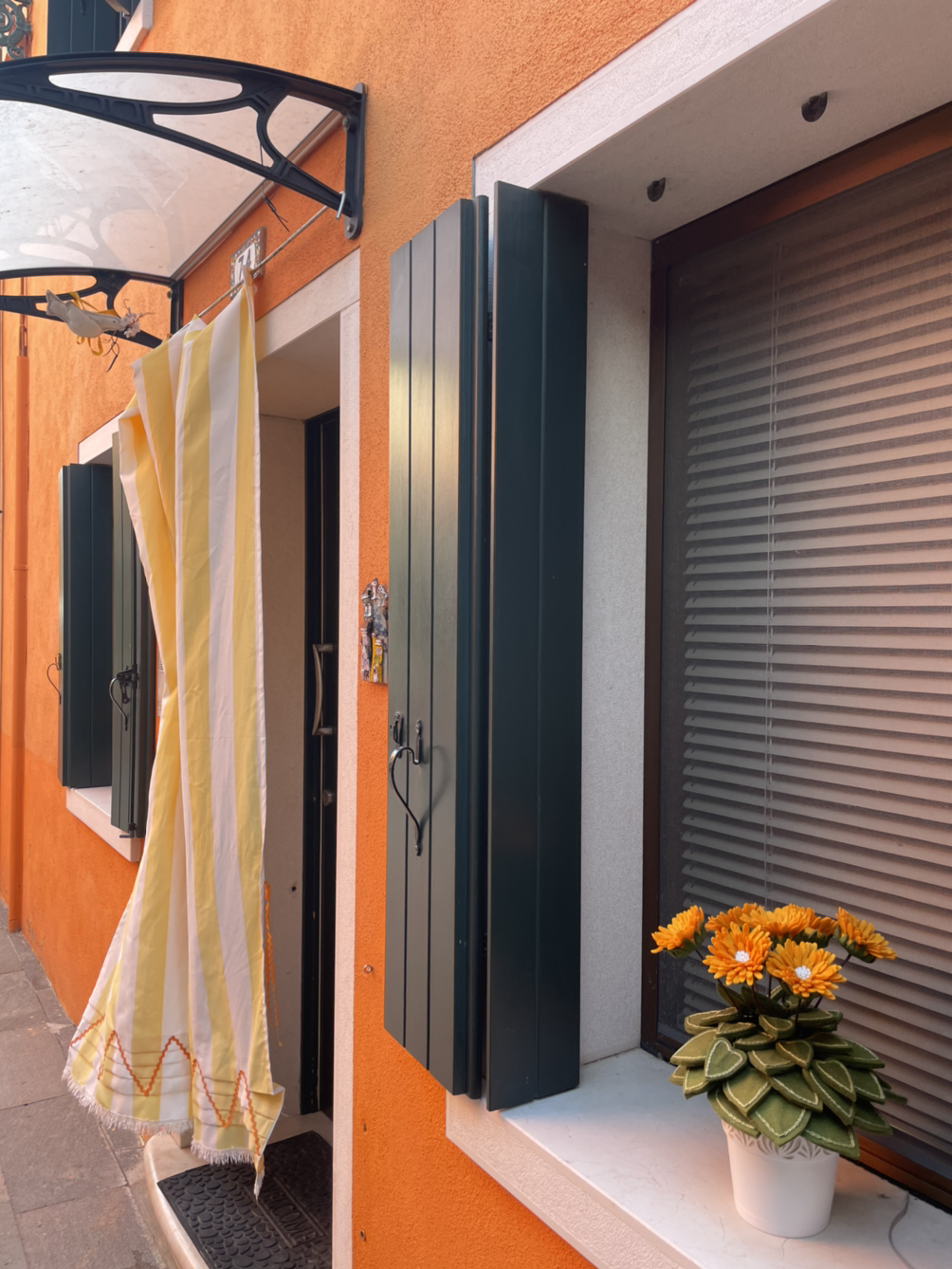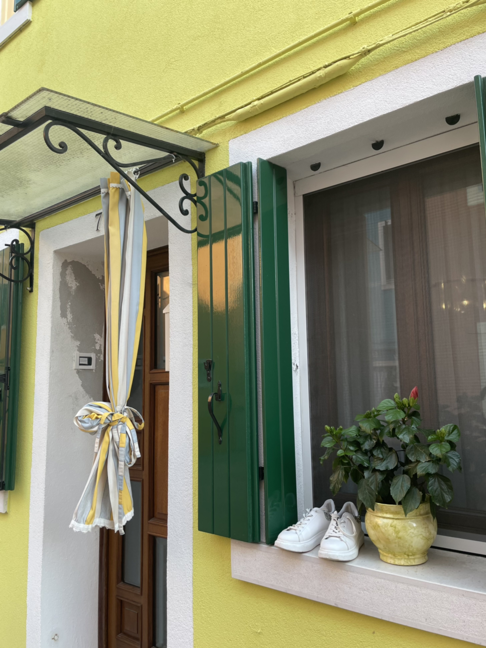 특히 베니스에서 건물마다 꽃이 화려하다. 오른쪽 집의 오렌지빛 국화는 천으로 만든 거다. 자수와 레이스의 동네 맞다.