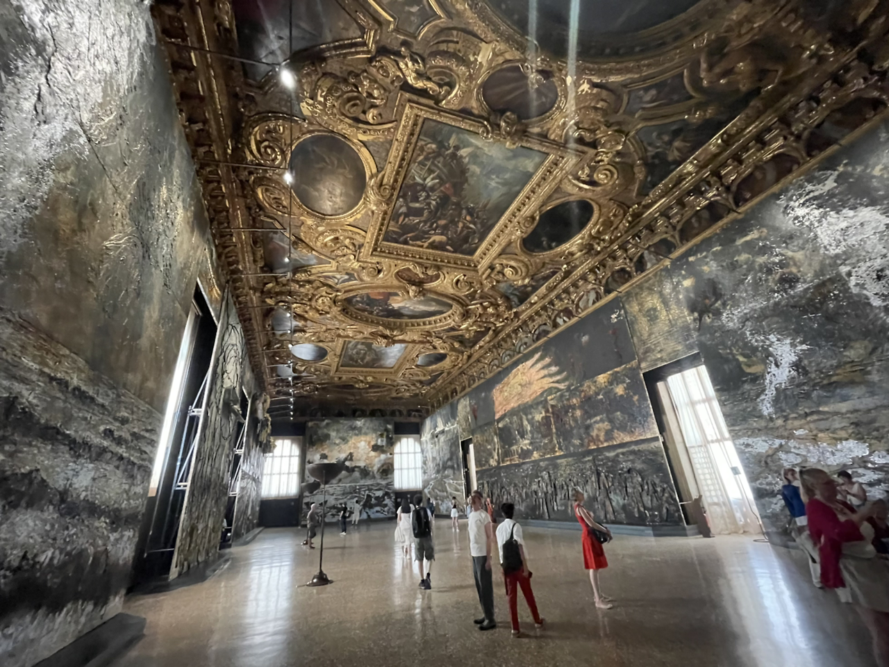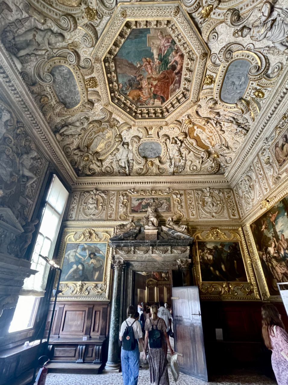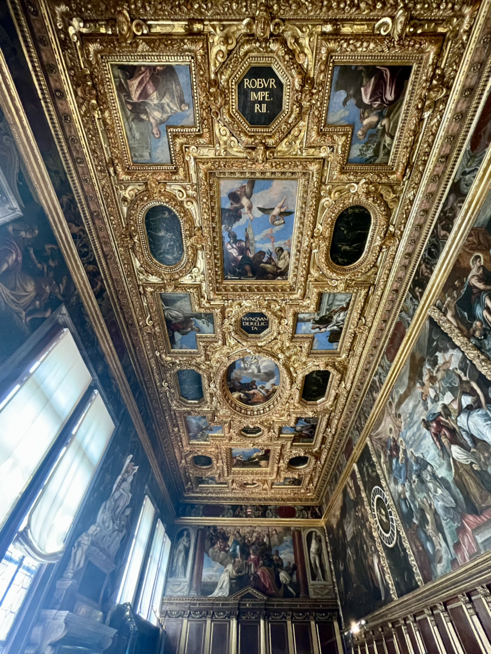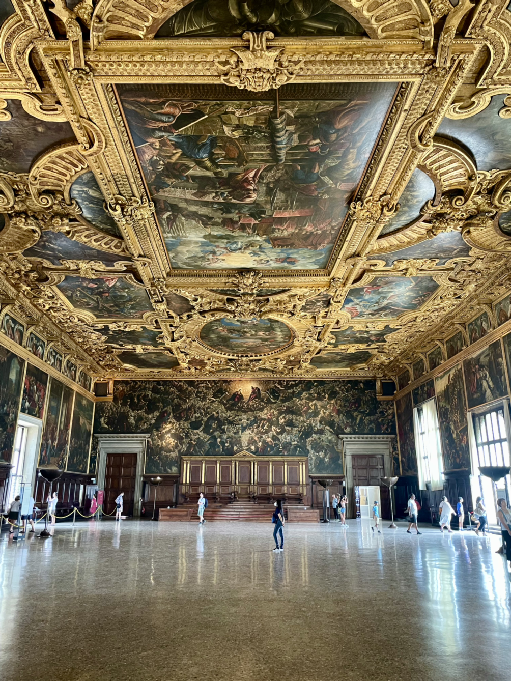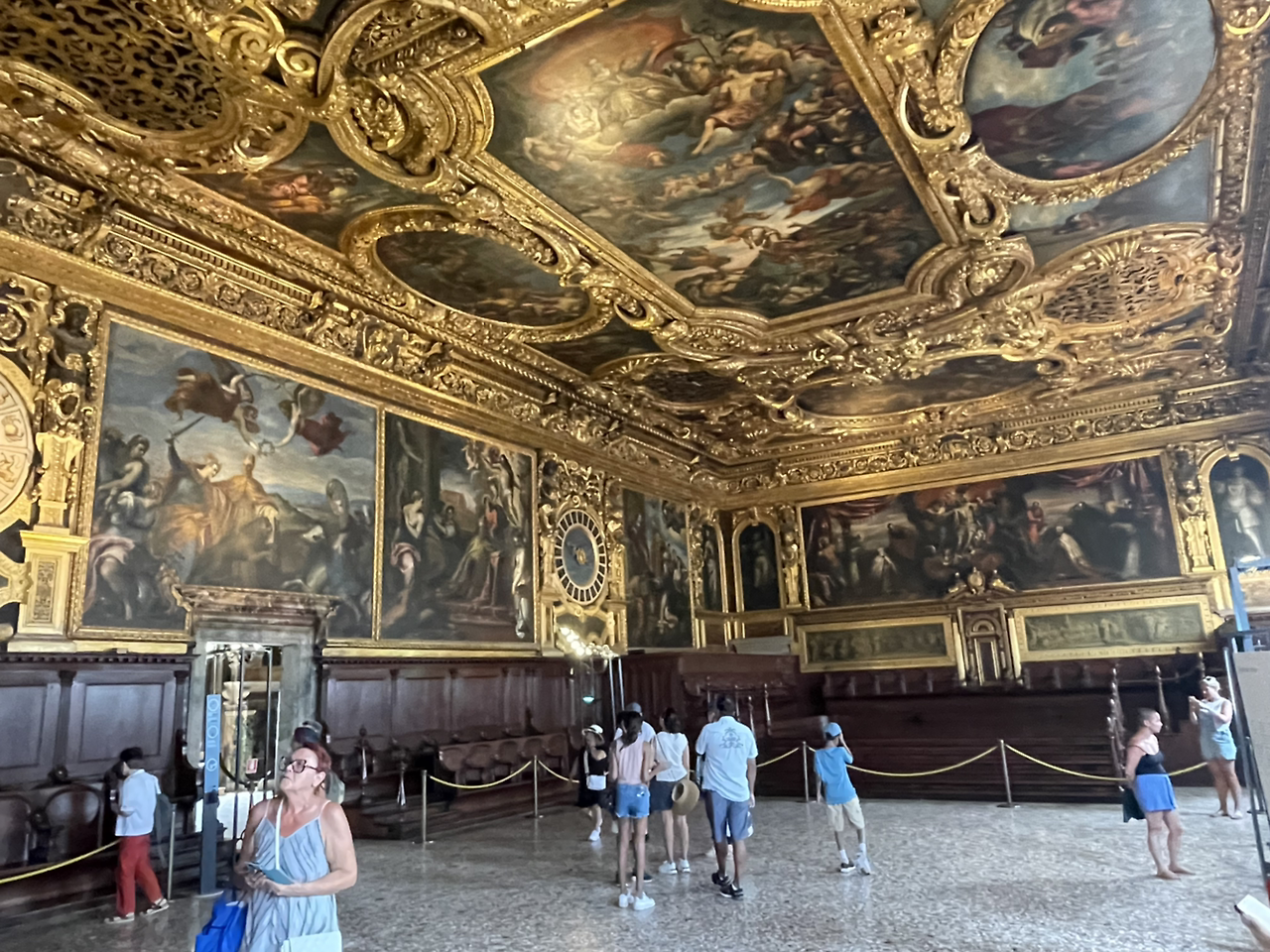 접견실이라는데, 베네치아 공국의 권세를 자랑하는 복도와 방들. 황금기를 황금으로 보여주는구나. 기죽으라 보여주는 과시용이기도 할텐데 효과가 있었겠다. 정말 어마어마하다.