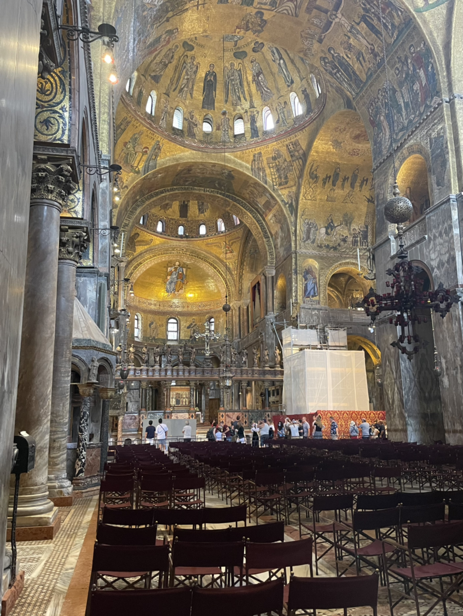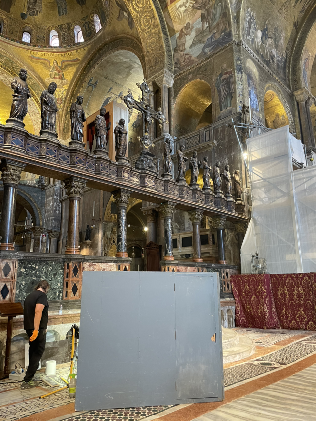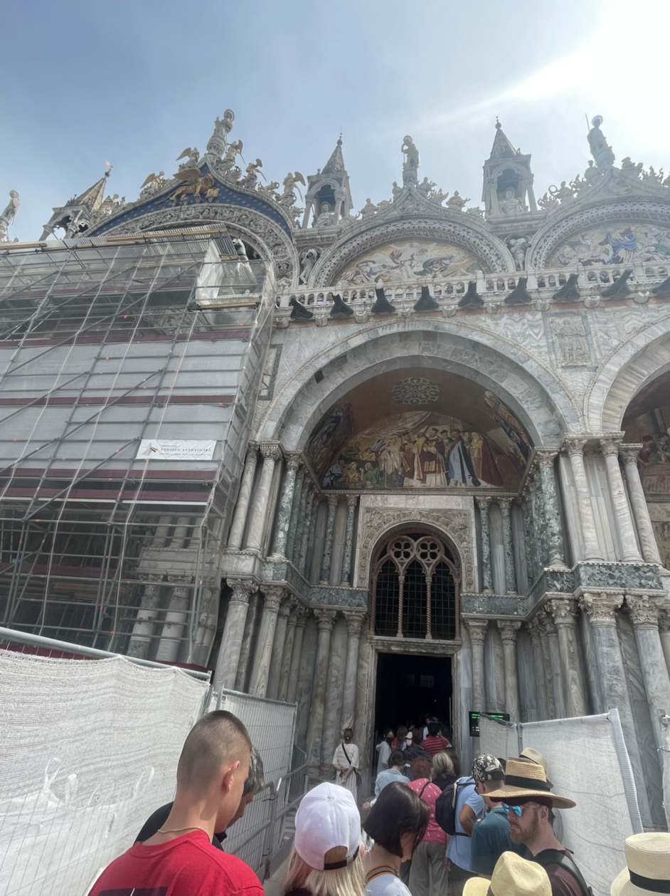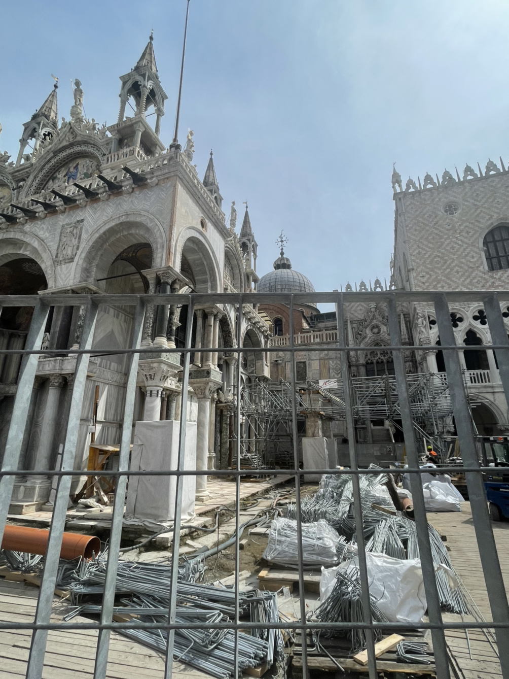 산마르코 성당은 정문의 모자이크화, 색깔 다른 대리석 기둥, 섬세한 조각.. 모든게 아름답지만 공사중이다. 아니 여기 공사 이렇게 하는게 최선인가.. 코로나 끝났다고 바쁜건 이해하지만.
