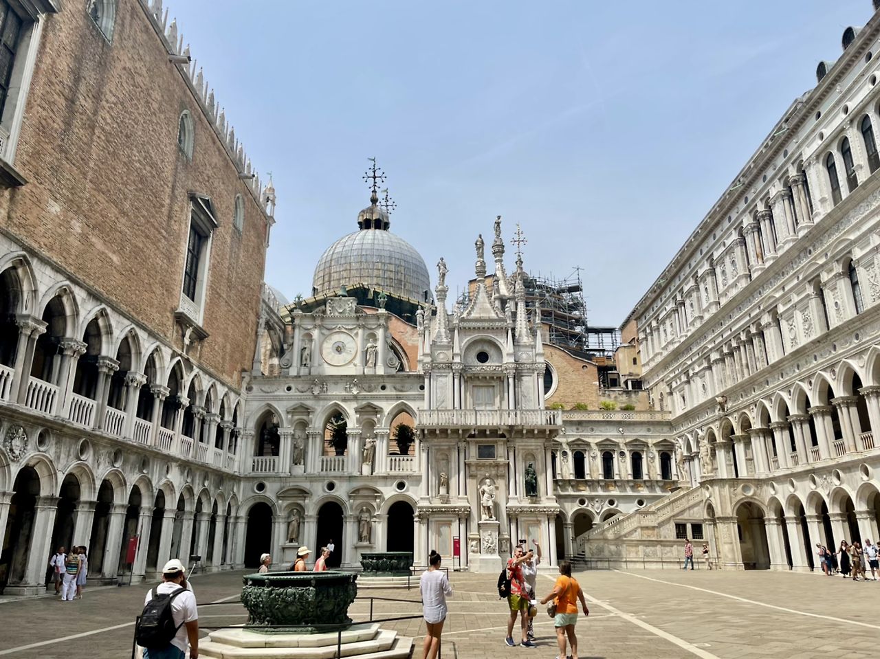 사람이 정말 한 치 앞을 모른다.. 베네치아의 인상은 물론, 기억까지 확 바뀌는 경험은 두칼레에서 시작됐다. 일단 도떼기 시장 같던 베네치아가 비싼 티켓 덕인지 궁전에 들어서자마자 호젓하고 우아하다. 814년 건축된 후 1400년대에 재건된 아름다운 궁전이다.