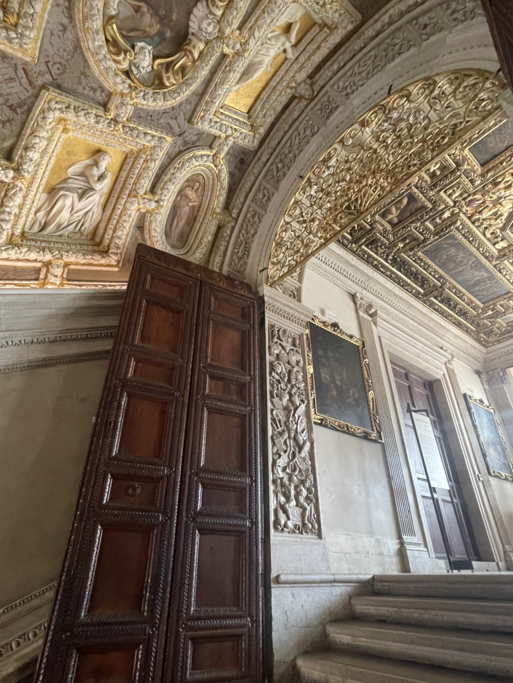 헤라클레스와 지구를 받치는 아틀라스를 보면서 건물에 들어가자마자 화려함과 웅장함에 홀렸다. 천장과 문, 벽의 장식들이 모두 예사롭지 않다.